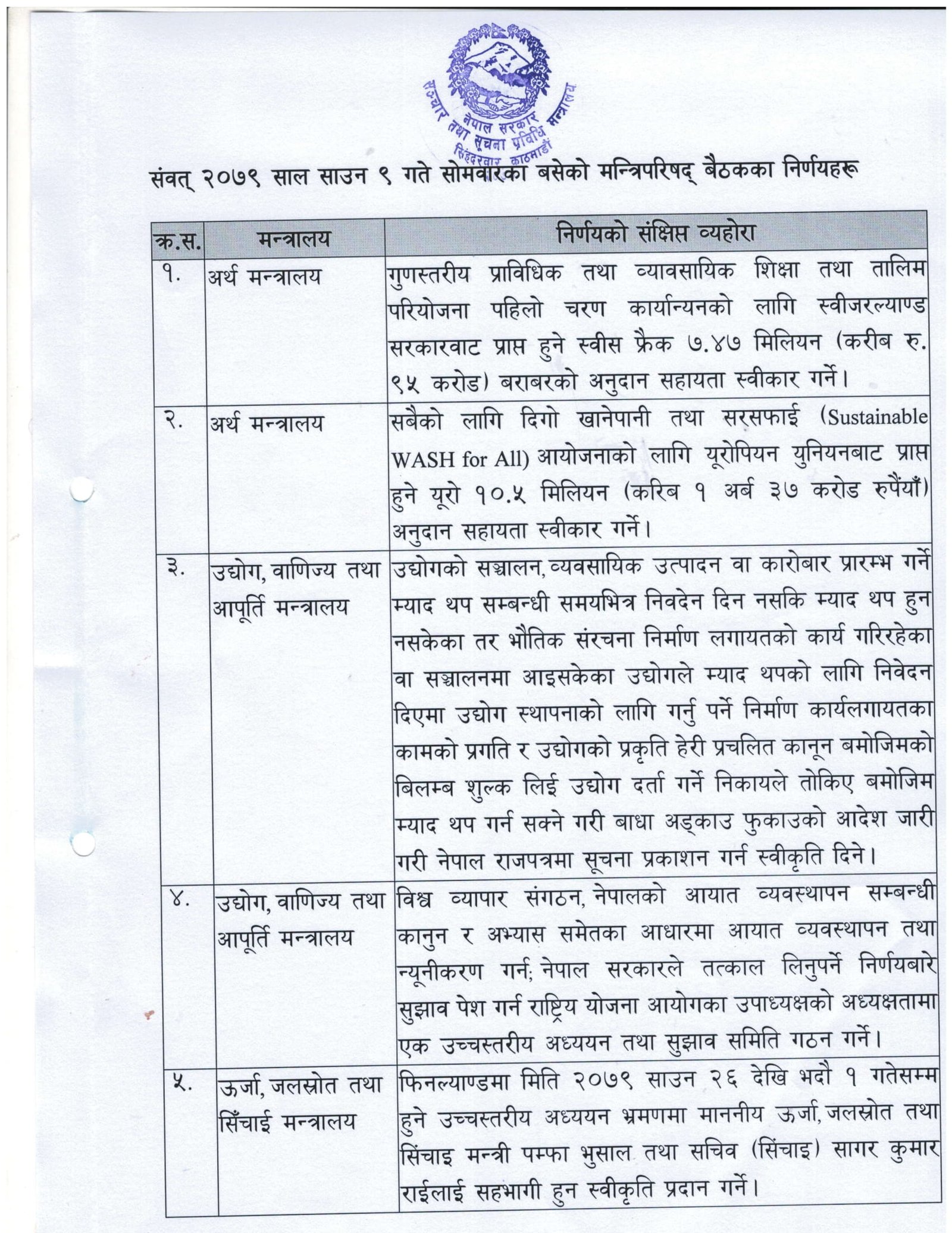 सोमबार बसेको मन्त्रिपरिषद बैठकले आयात बढेको र विदेशी मुद्राको सञ्चिति घटेको सहितको विषयमा आयातको महत्वपूर्ण भूमिका रहेकोले पनि सरकारले अध्ययन समिति गठन गर्ने निर्णय गरेको हो ।