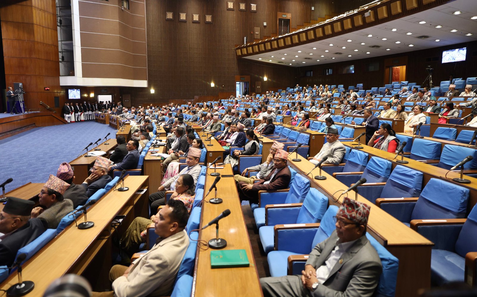 काठमाडौँ । नेपाली कांंग्रेसले प्रतिनिधिसभाको बैठकमा अवरोध गरेको छ । शुक्रबार बजेट अधिवेशनको पहिलो बैठकको सुरुवातमै कांग्रेसले अवरोध गरेको हो । सभामुखले बैठक अगाडि बढाउने क्रममा राष्ट्रपति कार्यालयले पठाएको पत्र वाचन गर्न खोज्दा कांग्रेस सांसदहरुले आसनबाट उभिएर अवरोध गरेका हुन् ।
