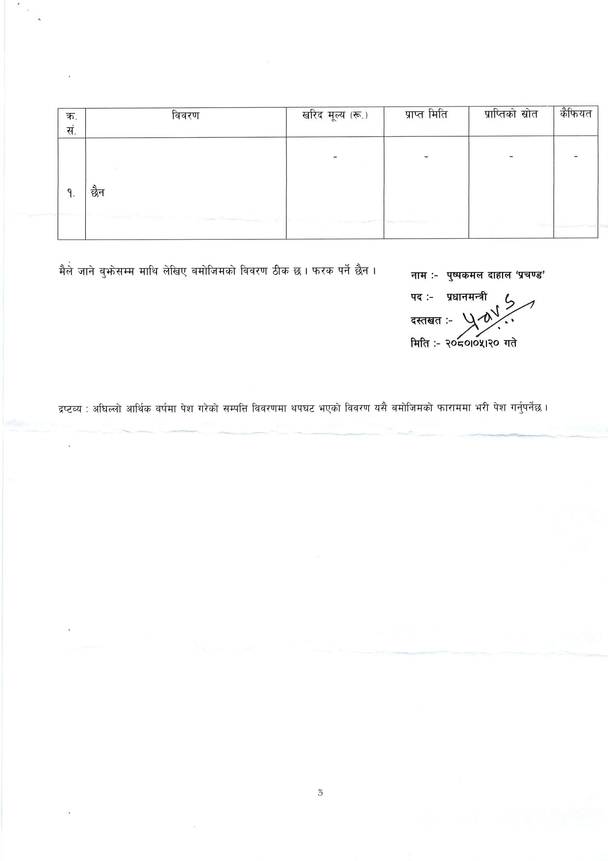 प्रधानमन्त्रीको सम्पत्ति २५ लाख नगद, १४ कठ्ठा जग्गा र पाँच तोला सुन