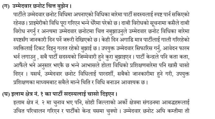 प्रतिवेदनमा भनिएको छ, ‘मंसिरको चुनावका बेला गगन थापाका विरुद्ध सशक्त उम्मेदवार उठाई उनको राजनीतिलाई त्यहीँ विराम लगाइदिने रणनीति बदलिएर गगनलाई जित्न सहज हुने वातावरण जुन सिर्जना गरिदियौँ, त्यसले आज हामीलाई नै चोट पुर्याएको छ । हुन त गगनले आफूलाई जित्न सहज वातावरण बनाइदिएकै कारण, आफ्ना पक्षधरलाई घण्टीमा भोट हाल्न लगाउँदा प्रत्यक्षमा दुई सिट नाफा हुन पुग्यो । नतिजाले काठमाडौं ४ पनि हामीले जित्ने देखाएकाले, गगनसँगको सहकार्यले हामीलाई न तात्कालिक फाइदा दियो, न अहिले फाइदा भयो । गगनसँग त्यतिबेला गरेको रणनीतिक सहकार्य विफल भएको समीक्षा गर्नपर्ने हुन्छ ।’