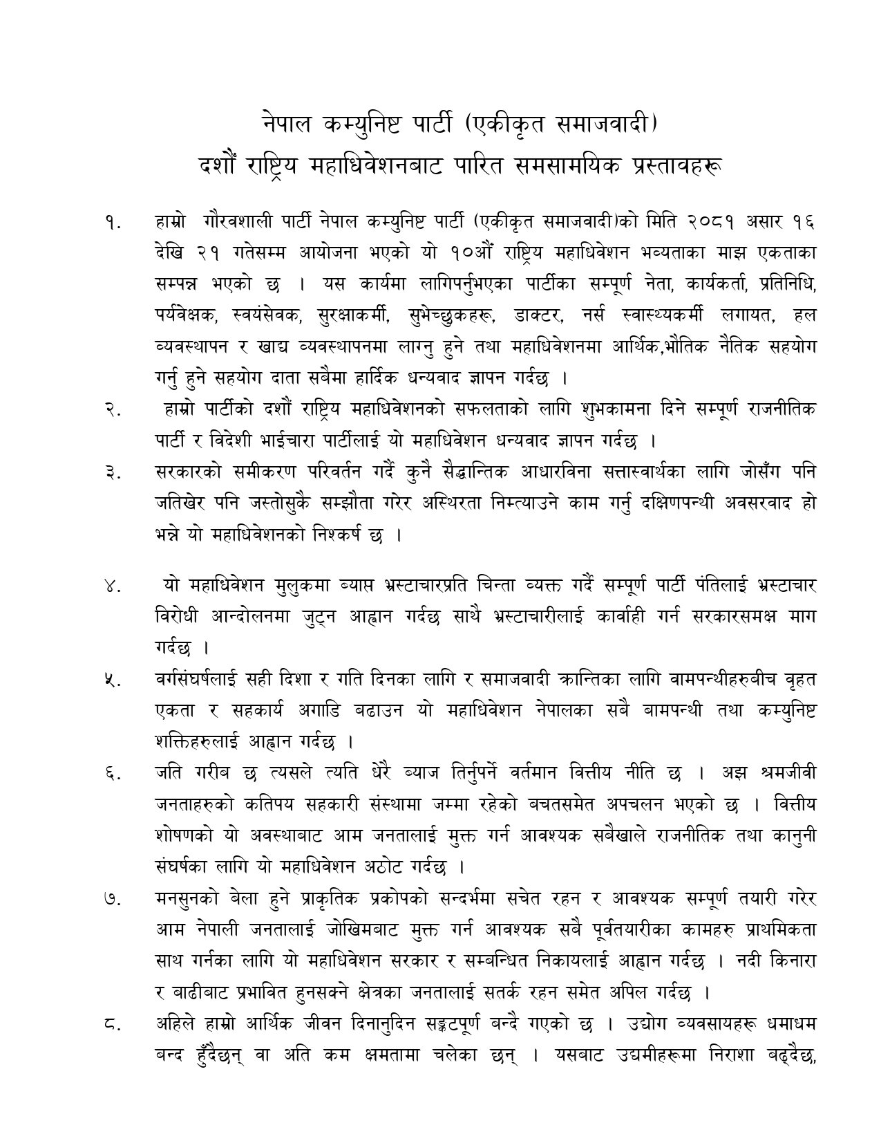 अध्यक्षमा माधवकुमार नेपाल, सम्मानित नेतामा झलनाथ खनाल र महासचिवमा घनश्याम भुसाल चयन भएका छन् । नयाँ थपिएका वरिष्ठ उपाध्यक्षसहित अरु पदाधिकारीको टुंगो लाग्न बाँकी छ । वरिष्ठ उपाध्यक्षमा राजेन्द्र पाण्डे, वेदुराम भुसाल र प्रमेश हमालले दाबी गरेका थिए ।