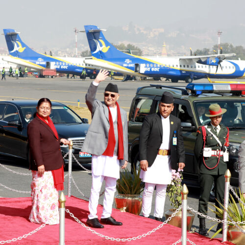 त्रिभुवन अन्तर्राष्ट्रिय विमानस्थलको अतिविशिष्ट कक्षमा प्रधानमन्त्री ओलीलाई उपप्रधानमन्त्री तथा सहरी विकासमन्त्री प्रकाशमान सिंह र गृहमन्त्री रमेश लेखकले बिदाइ गरे ।