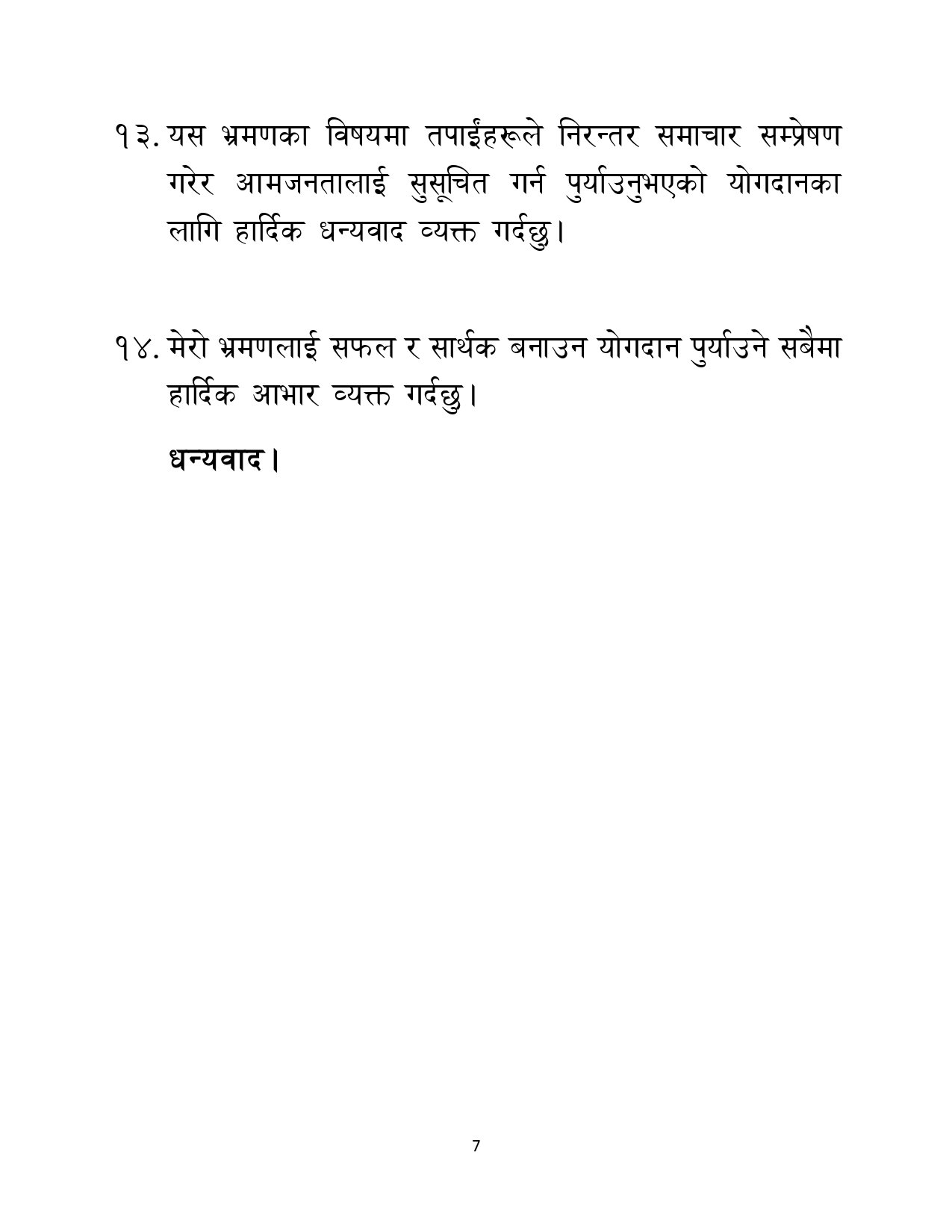 उनले १४ बुँदे नोट जारी गरी भ्रमणबारे विस्तृत विवरण सार्वजनिक गरेका छन् ।