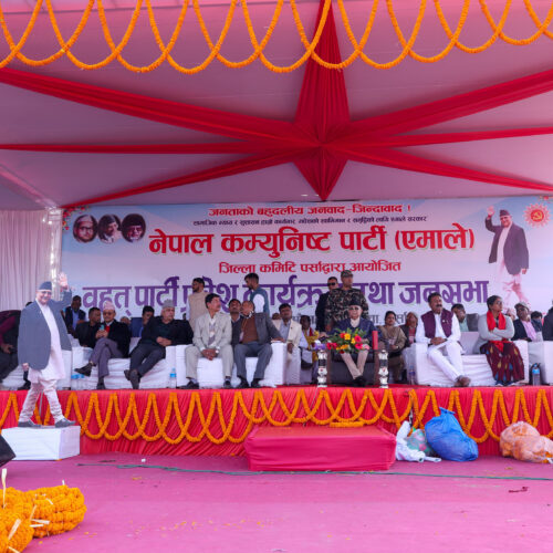 उनले आगामी २०८४ को निर्वाचनबाट एमाले निर्णायक शक्ति बन्ने र त्यसका लागि नेता कार्यकर्तालाई आजदेखि लाग्न निर्देशन दिए । उनले मधेशका नेताहरूले संविधानको धाराधारामा राजनीति गरेर जनता अलमल्याइरहेको आरोप लगाए । उनले भने, ‘यहाँका नेताहरूको माग संविधानको फलानो धारा फेनुपर्छ मात्रै भन्नुहुन्छ । संविधानको धाराको राजनीति गरेर जनता अलमल्याइरहनुहुन्छ ।’