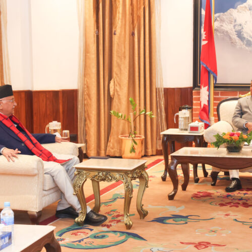 काठमाडौँ । राष्ट्रपति रामचन्द्र पौडलसँग प्रधानमन्त्री केपी शर्मा ओलीले शुक्रबार अपराह्न शिष्टाचार भेट गरेका छन् ।