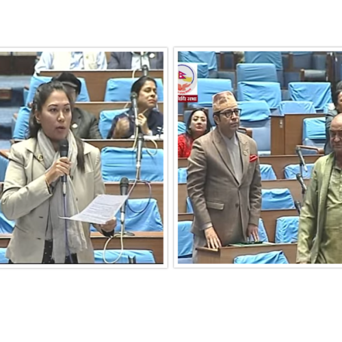 उनले भनिन्,‘काठमाडौँ क्षेत्र नम्बर ६ मा पर्ने तारकेश्वर वडानम्बर ९ को लोकतान्त्रिक चोकमा रहेको सरकारको नाममा रहेको जग्गाकित्तानम्बर ६२ र ६३ को सरकारी जग्गा कांग्रेस नेताले कब्जा गरेको स्थानीयबासिन्दाको उजुरीको बाबजुद स्थानीय सरकारले उक्त जग्गा संरक्षणमा कुनै पहल नगरेको आमगुनासो छ । यसमा ध्यानाकर्षण गराउन चाहन्छु ।’