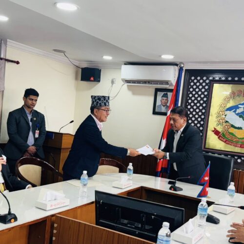 अध्यक्ष राजेन्द्र लिङ्देनको नेतृत्वमा गएको राप्रपाको प्रतिनिधिमण्डलले बिहीबार कार्यवाहक प्रधानमन्त्री प्रकाशमान सिंहलाई ध्यानाकर्षणपत्र बुझाएको हो ।