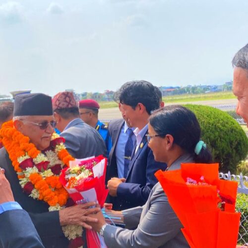 प्रधानमन्त्री जहाजबाट उर्लिँदै गर्दा फुलगुच्छा लिएर लाइनमा उभिएकी मेयर दाहाललाई ओलीले पनि उनीप्रति हार्दिकता नै दर्शाए । मेयर दाहालको हातबाट फुलगुच्छा लिँदै गर्दा ओलीले ‘छोरी सञ्चै छौं ?’ भनेर सोधेका थिए । रेनुले पनि मुस्कुराउँदै मुन्टो हल्लाएकी थिइन् ।