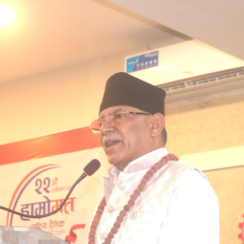 पूर्वेली जनसञ्चार सहकारी संस्था लिमिटेडद्वारा प्रकाशित ‘हाम्रो मत राष्ट्रिय दैनिक पत्रिका’को २२औँ वार्षिकोत्सव समारोहको आइतबार उद्घाटन गर्दै अध्यक्ष प्रचण्डले संविधानको परिमार्जन र संशोधनका निम्ति गम्भीर छलफलको आवश्यकता रहेको उल्लेख गर्दै सरकारले संविधान संशोधनका लागि आवश्यक छलफल गर्नुपर्ने बताए ।