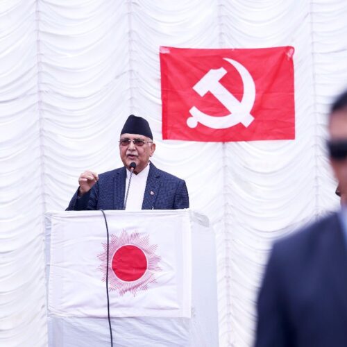 ‘सही कुरालाई पनि विरोध गरेर बखेडा निकाल्ने प्रवृत्ति कम्युनिष्ट आन्दोलनमा इतिहासदेखि नै देखा पर्दै आए । खास वैचारिक भिन्नता नभए पनि व्यक्तिगत स्वार्थका आधारमा दुई लाइनको कुस्ती चलाइयो । पार्टी विभाजन गरेर नामका लागि एकीकृत राख्ने प्रवृत्ति पनि छ’, अध्यक्ष ओलीले भने, ‘पार्टी प्रवृत्ति भने सही धारमै जान खोज्दै आयो । मदन भण्डारीको अगुवाइमा ल्याइएको जनताको बहुदलीय जनवादको विचारले कम्युनिष्टहरू निरङ्कुश हुन्छन् भन्ने हामीमाथिको आरोपलाई खण्डन गर्यो । यो विचार राजनीतिक लोकतन्त्रका लागि मात्र होइन आर्थिक र सामाजिक तथा मानव अधिकारका प्रश्नमा समेत राष्ट्रिय नीतिका रूपमा स्थापित भइसकेको छ । यसै जगमा हामीले लिएको समृद्ध नेपाल, सुखी नेपालीको राष्ट्रिय आकाङ्क्षा पूरा गर्न हामी लाग्नुपर्नेछ ।’