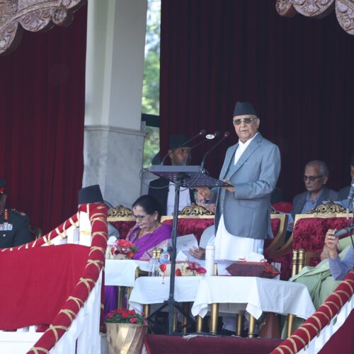गणतन्त्र दिवसको अवसरमा बिहीबार टुँडिखेलमा आयोजित विशेष समारोहलाई सम्बोधन गर्दै प्रधानमन्त्री ओलीले स्वतन्त्रताको मलिलो जमिनमा उम्रिएको जनताको सपना दरबारको भित्तामा लगेर टाँस्सियोस् कसैले भन्न नसक्ने बताएका हुन् ।