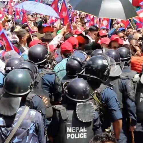 काठमाडौं । राजावादीहरूले आन्दोलनमा प्रहरीले हस्तक्षेप गरेको छ । आइतबार दिउँसो काठमाडौंको नक्साल नारायण चौरमा पुगेको राजवादीको जुलुसमा प्रहरीले हस्तक्षेप गरेको हो ।