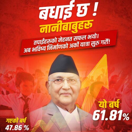उनले भनेका छन्, ‘एसइई परीक्षामा ग्रेड प्राप्त गर्नु भएका भाइबहिनीहरुलाई हार्दिक बधाई ! यसवर्ष करिब ६१.८१ प्रतिशत परीक्षार्थीले ग्रेड प्राप्त गर्नु भएको छ। गतवर्ष ४७.८६% प्रतिशत परीक्षार्थीले मात्र ग्रेड प्राप्त गर्नु भएको थियो भने ५२.१४ प्रतिशत परीक्षार्थी none graded रहनु परेको थियो । बितेको वर्षमा नतिजा सुधार गर्न हामीले गरेको मेहनत काम लागेको छ। ग्रेड नपाउने विद्यार्थीहरुले पनि यसलाई नै अन्तिम परीक्षा नठान्नु होला, सफलताको अर्को दिन पनि आउने छ।’
