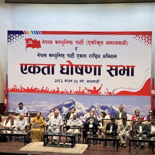 काठमाडौँ । नेकपा एकीकृत समाजवादी र वामदेव गौतम नेतृत्वको नेकपा राष्ट्रिय एकता अभियानबीच पार्टी एकता भएको छ । शुक्रबार राष्ट्रिय सभागृहमा कार्यक्रम गरी पार्टी एकता घोषणा गरिएको हो ।
