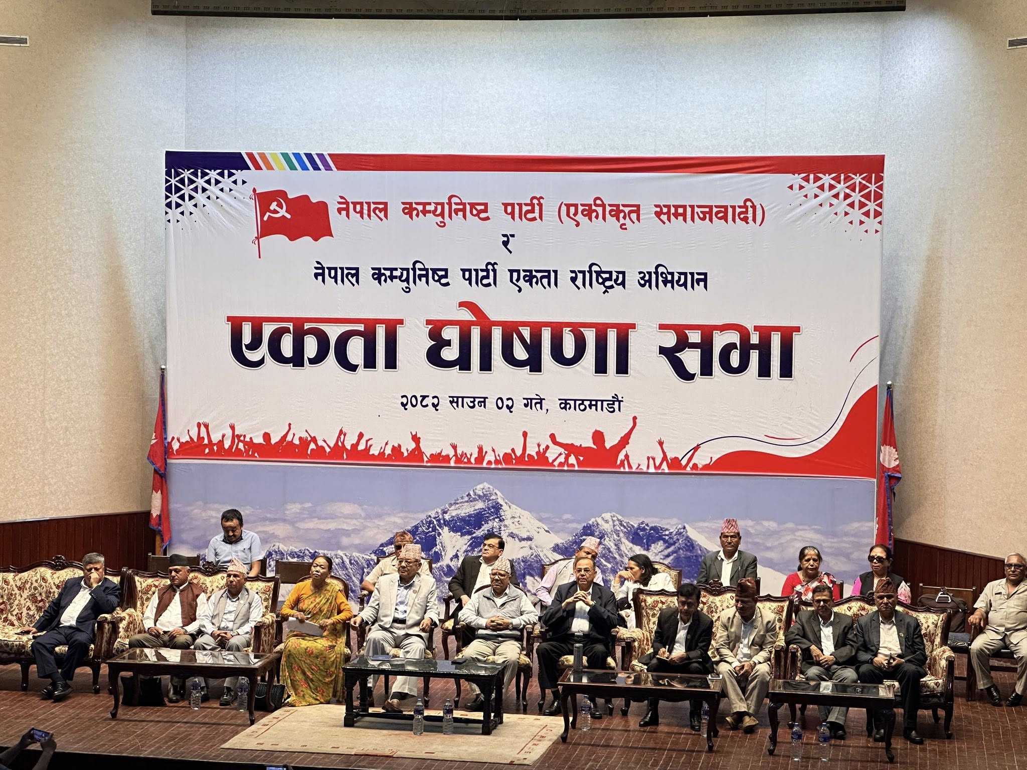 एकता घोषणा कार्यक्रममा नेकपा (एकीकृत समाजवादी)का अध्यक्ष माधवकुमार नेपाल, पूर्वप्रधानमन्त्री झलनाथ खनाल तथा नेकपा एकता राष्ट्रिय अभियानका अध्यक्ष वामदेव गौतमलगायत दुबैतर्फका नेता कार्यकर्ता सहभागी भएका थिए ।