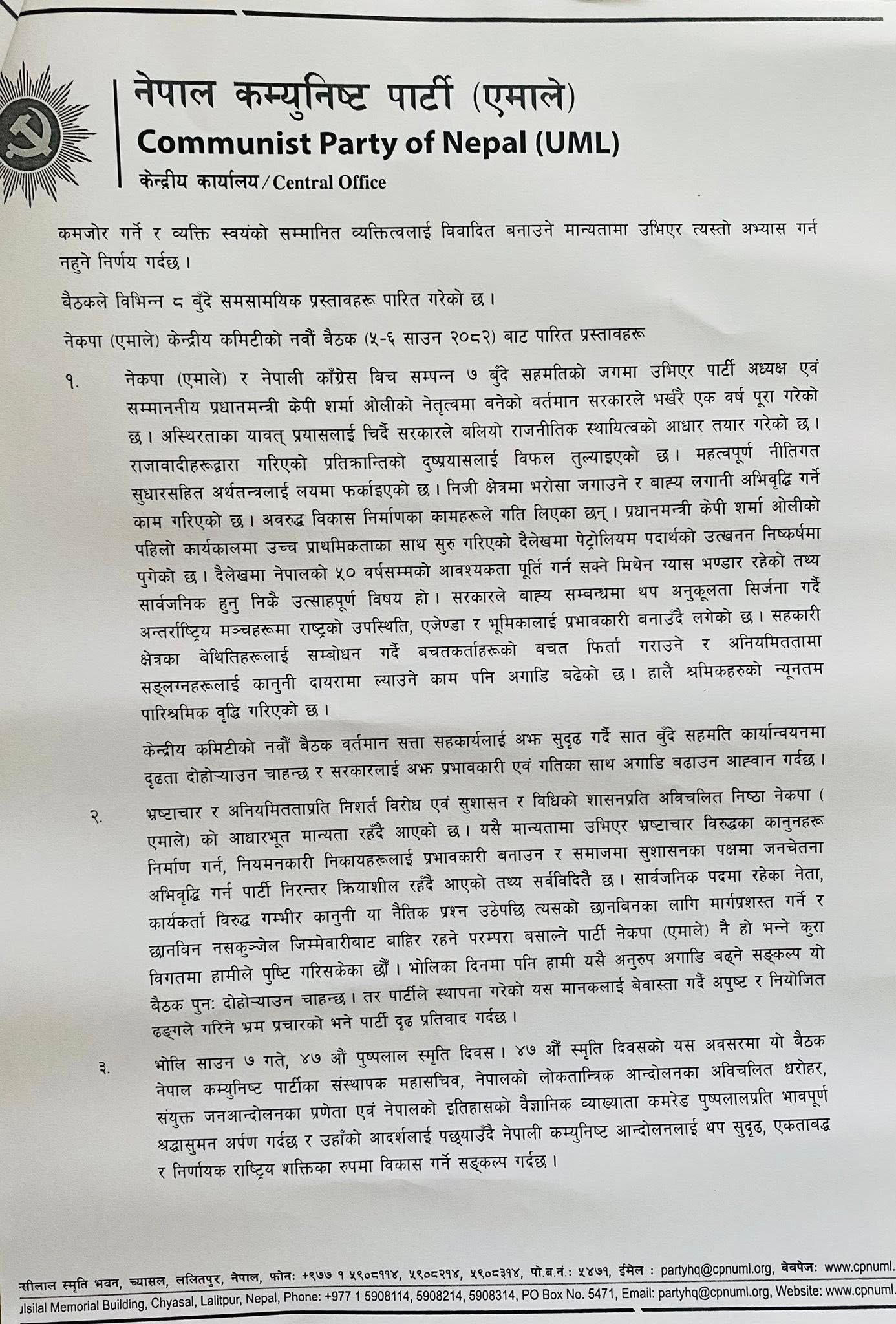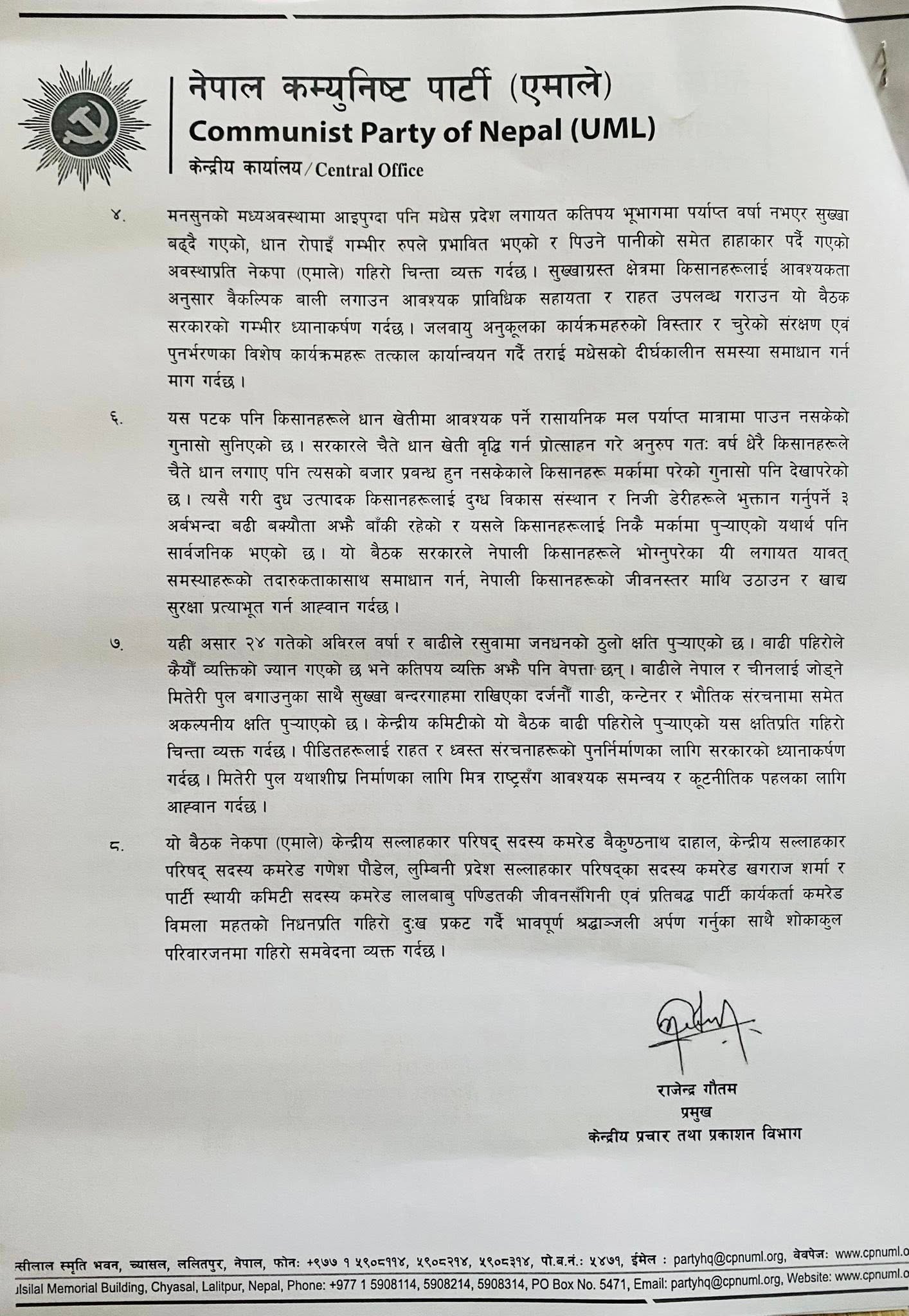 उनले भने, ‘सदस्यता नवीकरणको विषयमा पार्टी विधानका हिसाबले पनि हामीले नवीकरण गर्ने कि नगर्ने भन्ने विषय केन्द्रीय कमिटीको विषय बन्नुपर्दथ्यो। हाम्रो मान्यता त्यही थियो । केन्द्रीय कमिटीले नै उहाँको फरक भूमिकालाई आवश्यक ठानेपछि उहाँको सदस्यतालाई आवश्यक ठानेनौँ।’