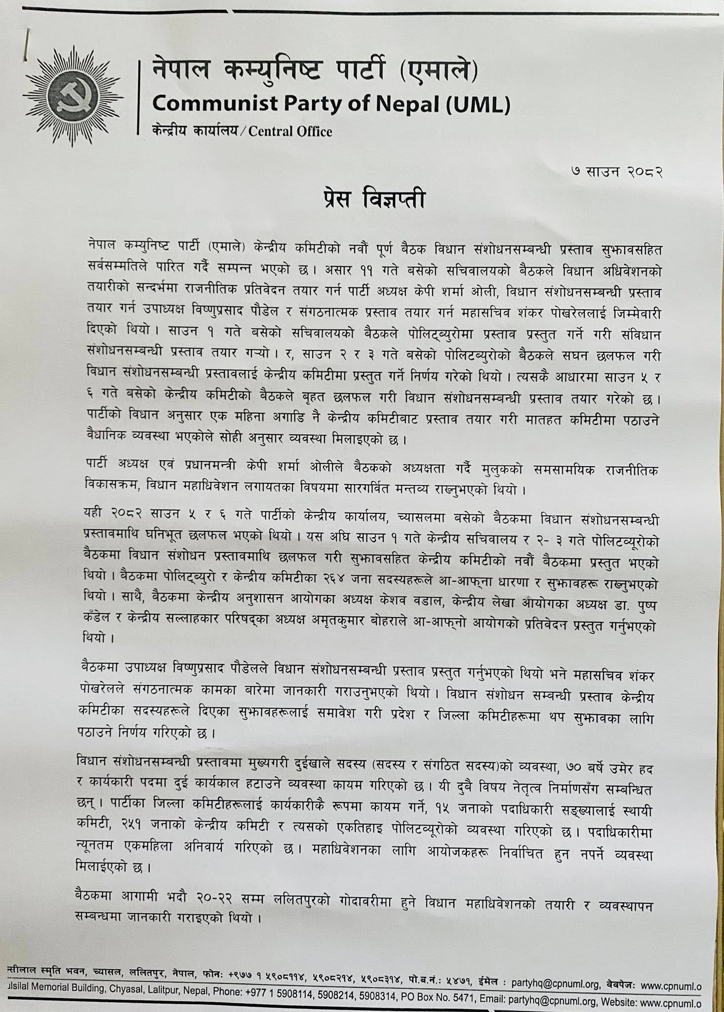 केन्द्रीय कमिटी बैठकका निर्णयबारे जानकारी दिन बुधबार आयोजित पत्रकार सम्मेलनमा महासचिव पोखरेलले सदस्यता नवीकरणको विषय पार्टीलाई पहिले नै थाहा भएको तर यसबारे उपयुक्त समयमा निर्णय गर्नुपर्छ भनेर सार्वजनिक नगरेको बताएका हुन् ।