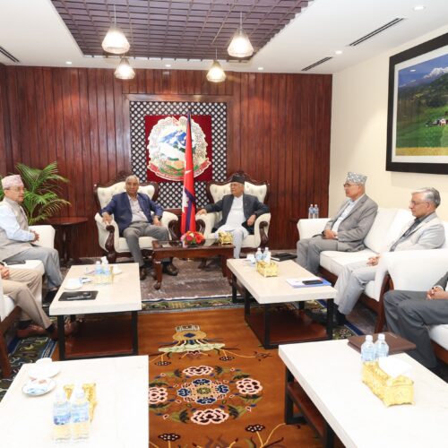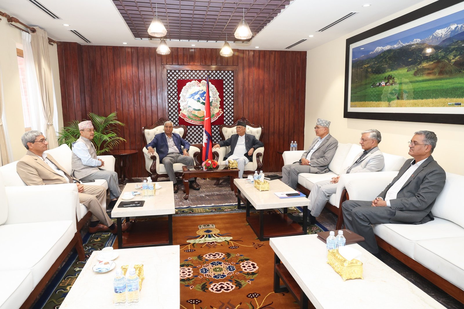 काठमाडौं । सत्तारुढ नेपाली कांग्रेस र नेकपा एमालेका शीर्ष नेता छलफलमा जुटेका छन् । प्रधानमन्त्री निवास बालुवाटारमा दुई दलका शीर्ष नेता छलफलमा जुटेका हुन् ।