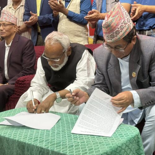 काठमाडौं । जनता समाजवादी पार्टी (जसपा) र राष्ट्रिय मुक्ति पार्टी नेपालबीच कार्यगत एकता गर्ने सहमति भएको छ । बिहीबार काठमाडौंमा दुवै पार्टीले कार्यगत एकताको पत्रमा हस्ताक्षर गरेका छन् ।