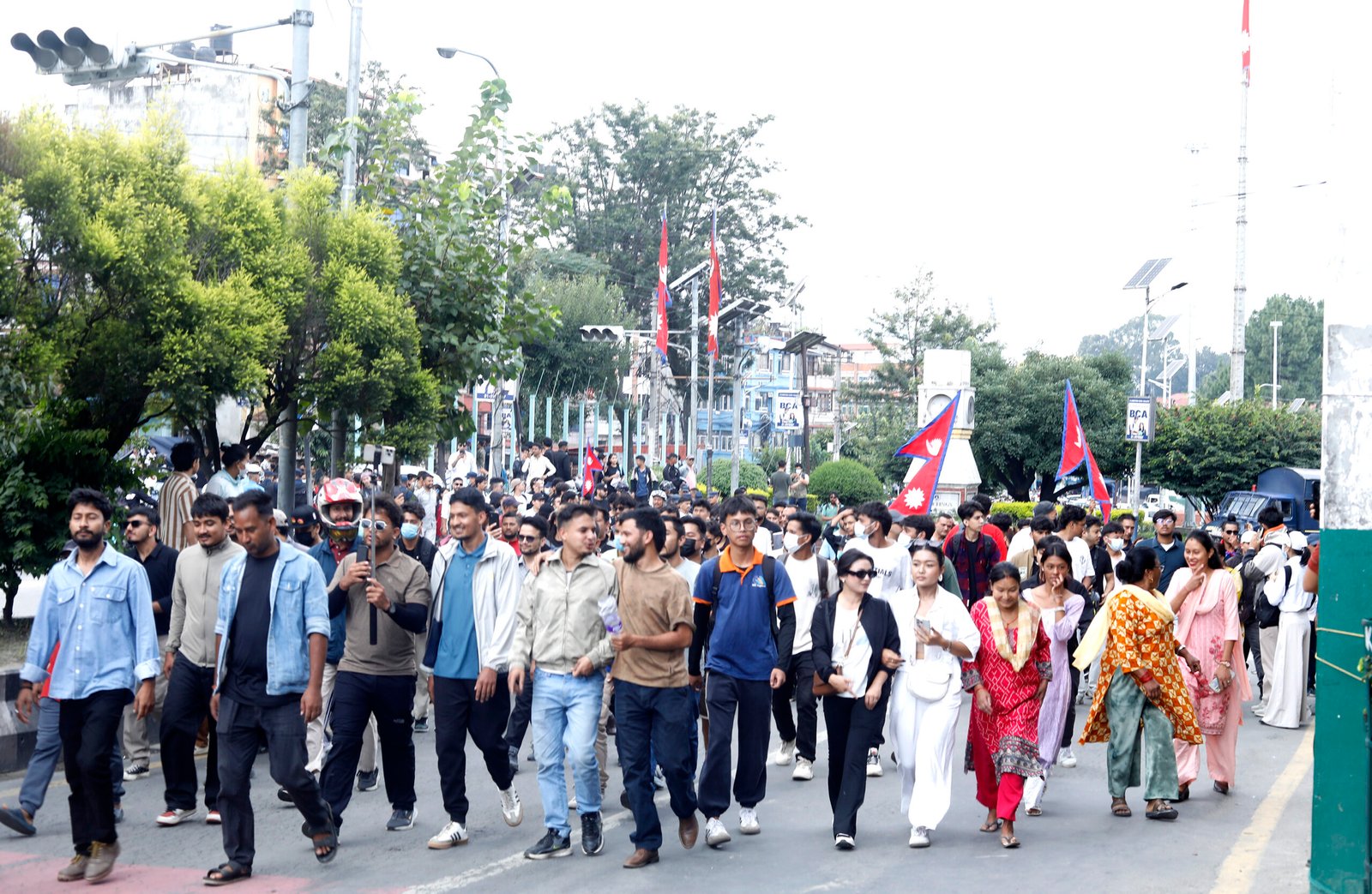 उनीहरूले भ्रष्टाचारविरोधी नारा लगाइरहेका छन् । सामाजिक सञ्जाल प्रतिबन्ध र भ्रष्टाचारविरुद्ध सडकमा उत्रेका जेनजी पुस्ताले प्रदर्शन गरेको हो । प्रदर्शनमा सहभागी हुन कतिपय विद्यार्थी कलेज ड्रेसमै आएका थिए ।
