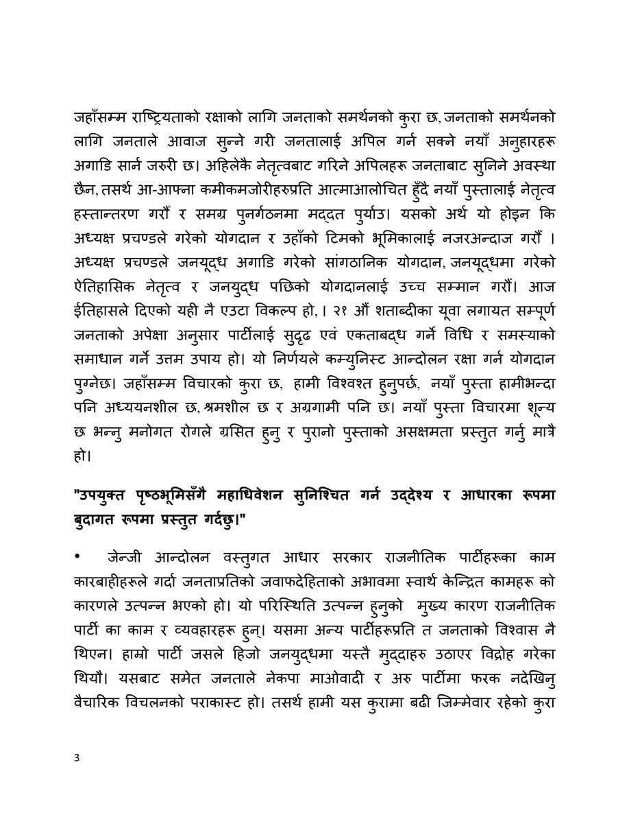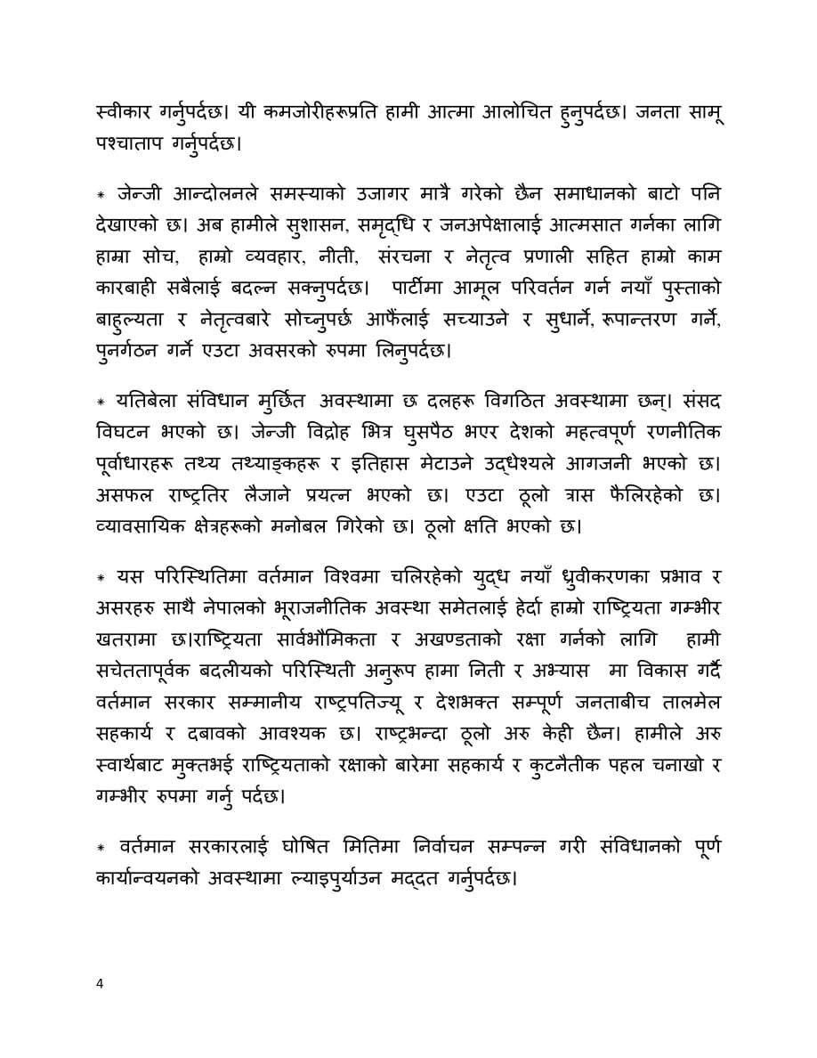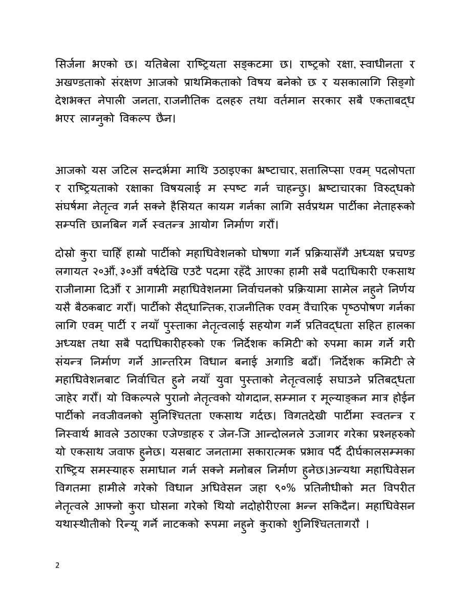 उनले भनेका छन्,’जेनजी विद्रोहबाट अझ मुखरित भएर उठेको पहिलो विषय भ्रष्टाचार, कमिसनतन्त्र, दलतन्त्र, नेतातन्त्र, दलालीतन्त्र र परिवारकै कारणले देश अघि बढ्न नसकेको भन्ने एउटा निष्कर्ष हो भने दोस्रो विषय राजनीति दशकौँसम्म निश्चित व्यक्तिको हातमा रहिराख्ने कुराले उत्पन्न गरेको संकट अर्थात् नेतृत्व हस्तान्तरण, पुस्तान्तरण र पुनर्गठनको कुरा हो ।’