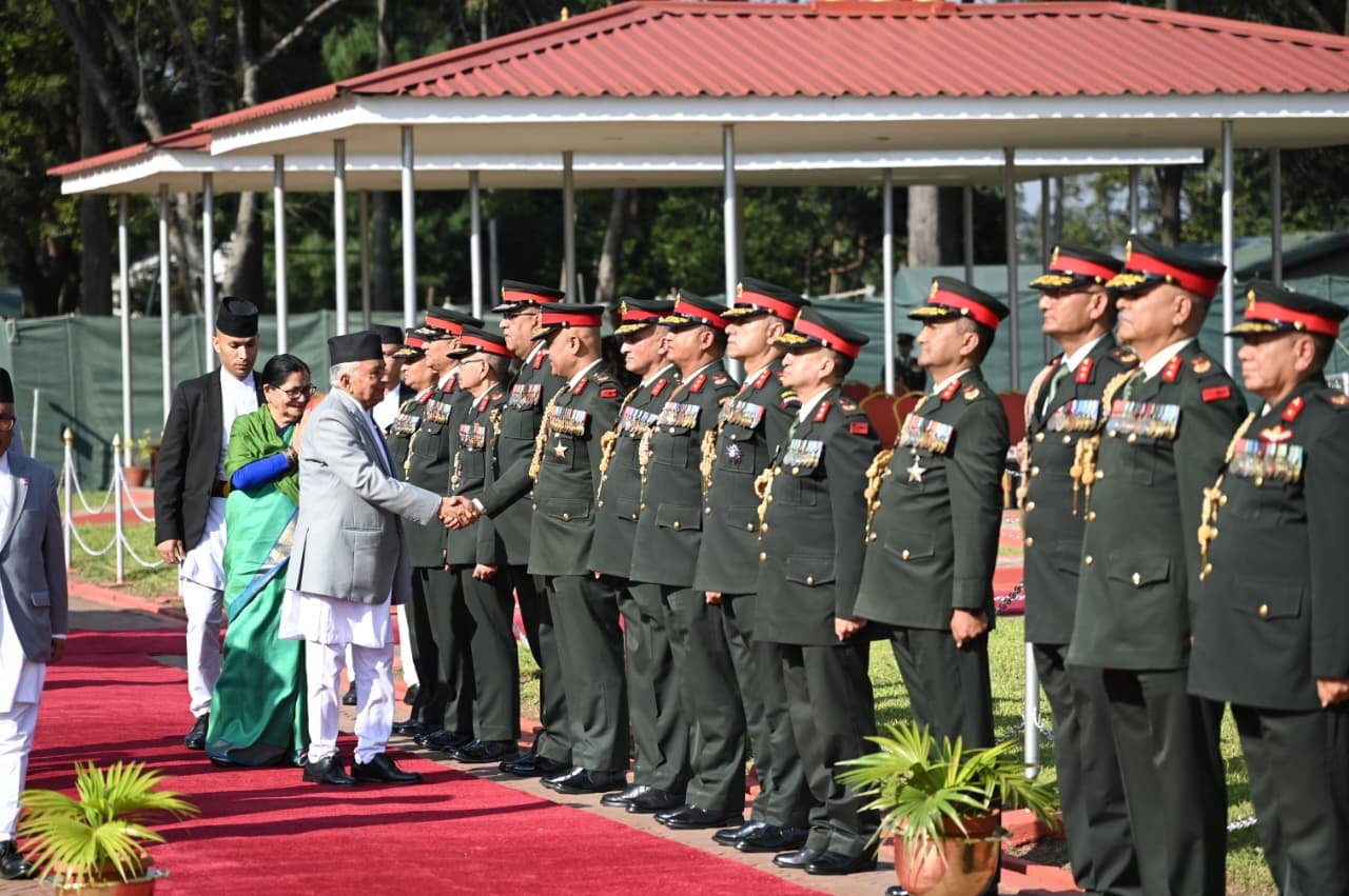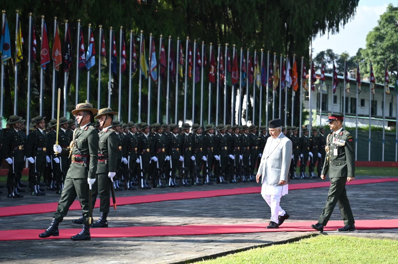 सो अवसरमा नेपाली सेनाको एक टुकडीले राष्ट्रपति पौडेलको सम्मानमा सलामी अर्पण गरेको थियो ।