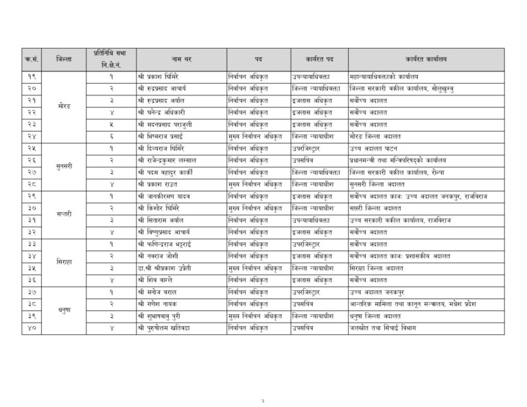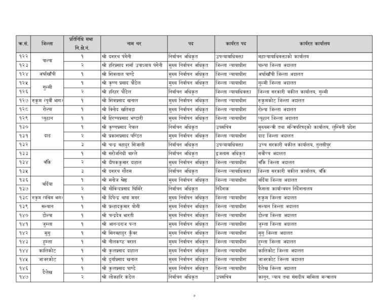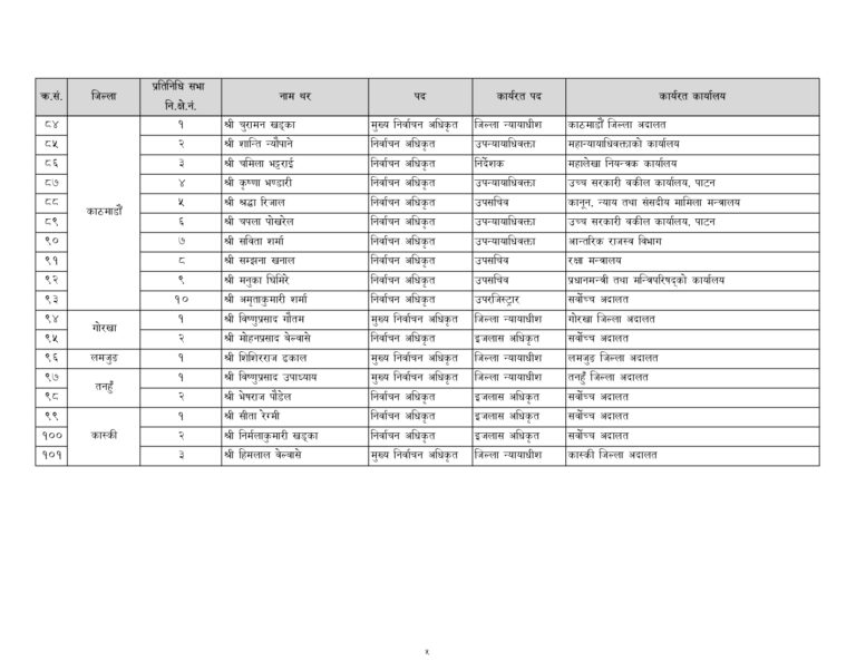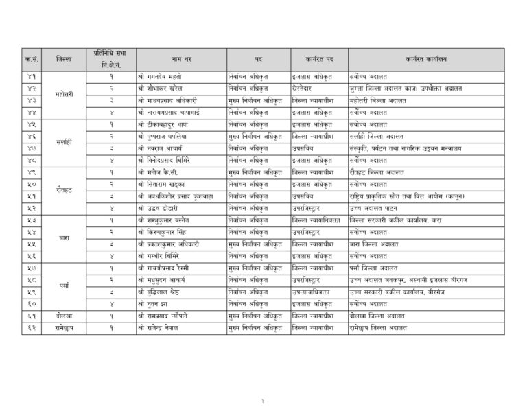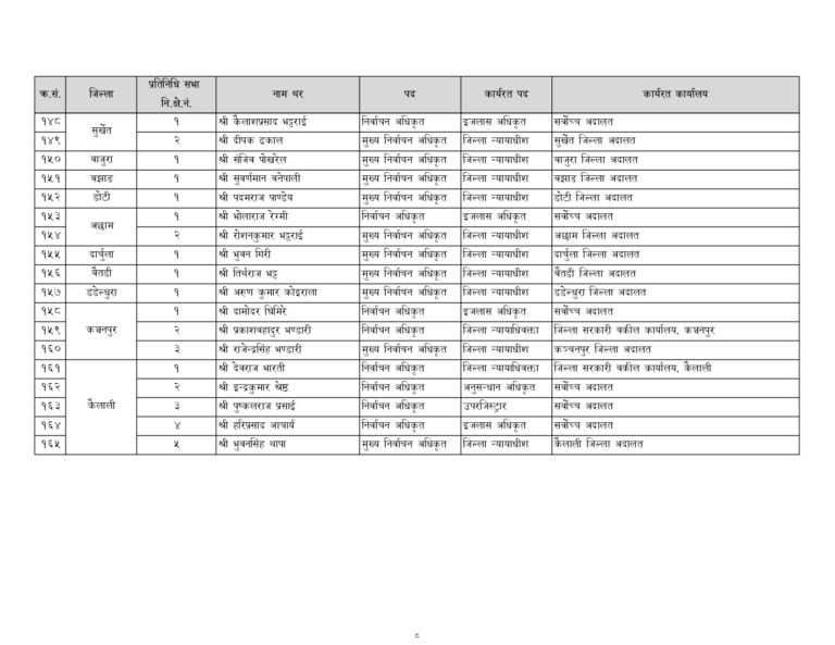 आयोगले ७७ जना न्यायाधीशलाई मुख्य निर्वाचन अधिकृत र न्याय सेवा आयोगको परामर्शमा ८८ जना न्याय सेवाका राजपत्राकिंत द्वितिय श्रेणीका अधिकृतलाई निर्वाचन अधिकृत नियुक्त गरेको हो ।