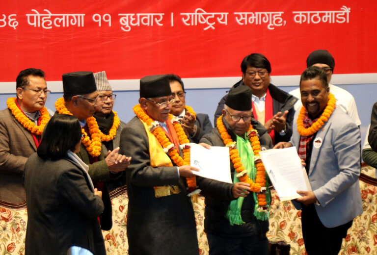 काठमाडौं। नेपाली कम्युनिष्ट पार्टी र राष्ट्रिय मुक्ति पार्टी नेपाल (एकता पक्षधर) बीच बुधबार औपचारिक रूपमा पार्टी समायोजन भएको छ। बुधबार आयोजित एक विशेष कार्यक्रमका बीच दुवै पार्टीबीच समायोजनसम्बन्धी सहमतिपत्रमा हस्ताक्षर भएको हो।
