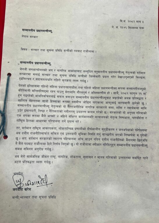 सञ्चारमन्त्री खरेलद्वारा पदबाट राजीनामा, रास्वपाबाट चुनाव लड्ने