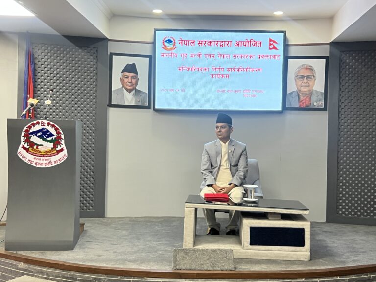 बिहीबार बसेको मन्त्रिपरिषद् बैठकका निर्णय शुक्रबार सञ्चार तथा सूचना प्रविधि मन्त्रालयमा पत्रकार सम्मेलनमार्फत सार्वजनिक गर्दै सरकारका प्रवक्ता एवं गृहमन्त्री ओमप्रकाश आर्यालले उक्त जानकारी दिएका हुन् ।