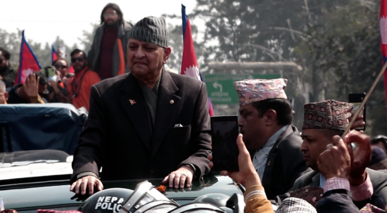 काठमाडौं । झापाबाट काठमाडौँ फर्किका पूर्वराजा ज्ञानेन्द्र शाहलाई त्रिभुवन अन्तर्राष्ट्रिय विमानस्थल बाहिर समर्थकले भव्य स्वागत गरेका छन् । समर्थकहरूले विभिन्न नारासहित उनलाई विमानस्थल गेट बाहिर स्वागत गरेका हुन् ।