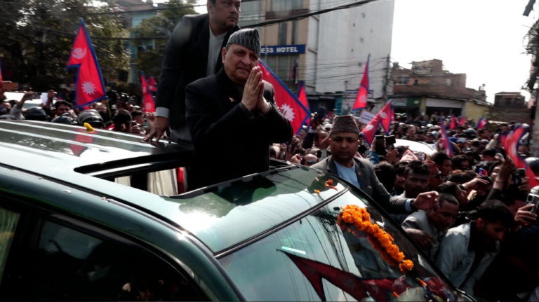 उनले गाडीबाट समर्थकहरूलाई हात हल्लाउँदै धन्यवाद दिएका थिए । त्यसक्रममा उनका समर्थहरुले राजसंस्थाका पक्ष्मा नाराबाजीसमेत गरेका थिए । यता जिल्ला प्रशासन कार्यालय काठमाडौँले विमानस्थलमा भिडभाड नगर्न भन्दै निषेधाज्ञा समेत जारी गरेको छ ।
