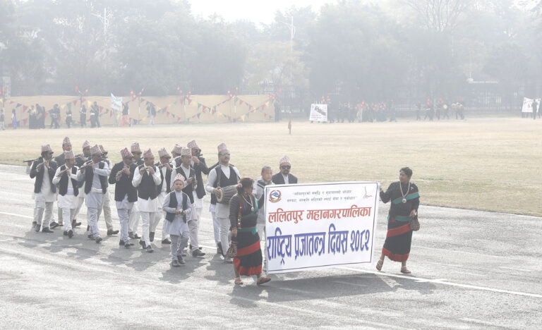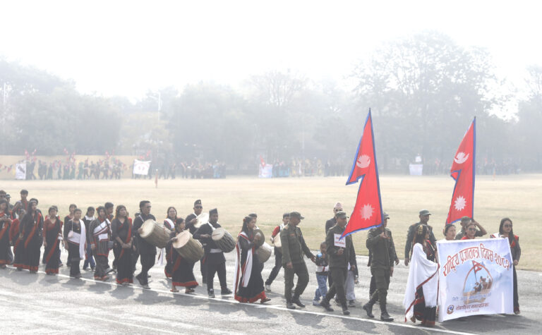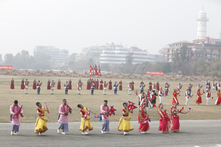 राष्ट्रपति पौडेल प्रथम महिला सविता पौडेलसहित राष्ट्रिय प्रजातन्त्र दिवस मूल समारोह समितिद्वारा आयोजित उक्त समारोहमा सरिक भएका हुन् ।