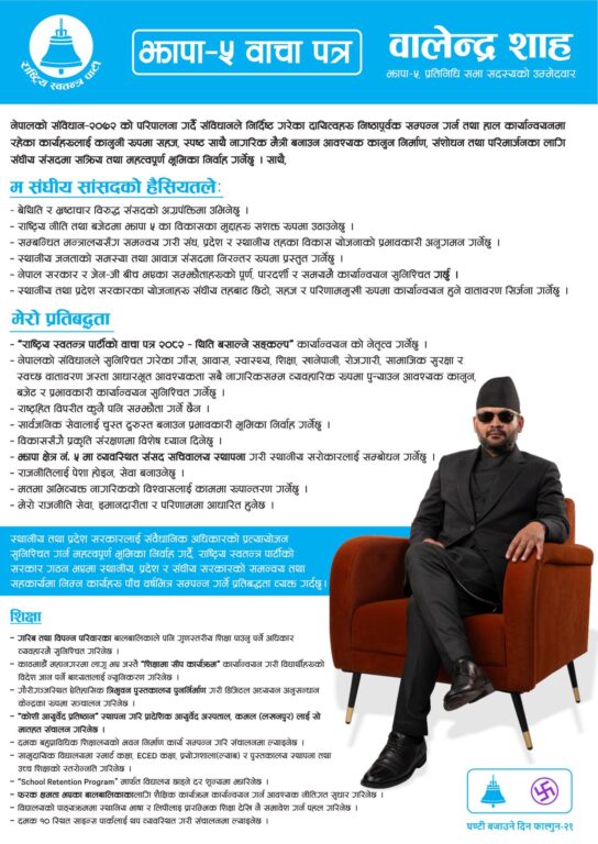 डिजिटल अध्ययन अनुसन्धान केन्द्र निर्माणदेखि सुकुम्बासी समस्या समाधानसम्म, यस्तो छ झापा-५ का लागि बालेनको वाचापत्र
