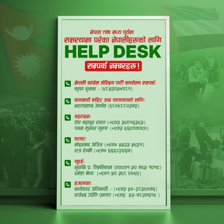 मध्यपूर्वमा समस्यामा परेका नेपालीलाई सघाउन कांग्रेसले खोल्यो ‘हेल्प डेक्स’