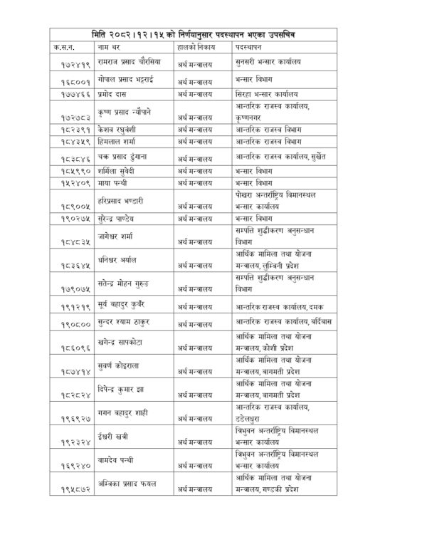 एकैपटक अर्थ मन्त्रालयका ३० उपसचिवको सरुवा(सूचीसहित)