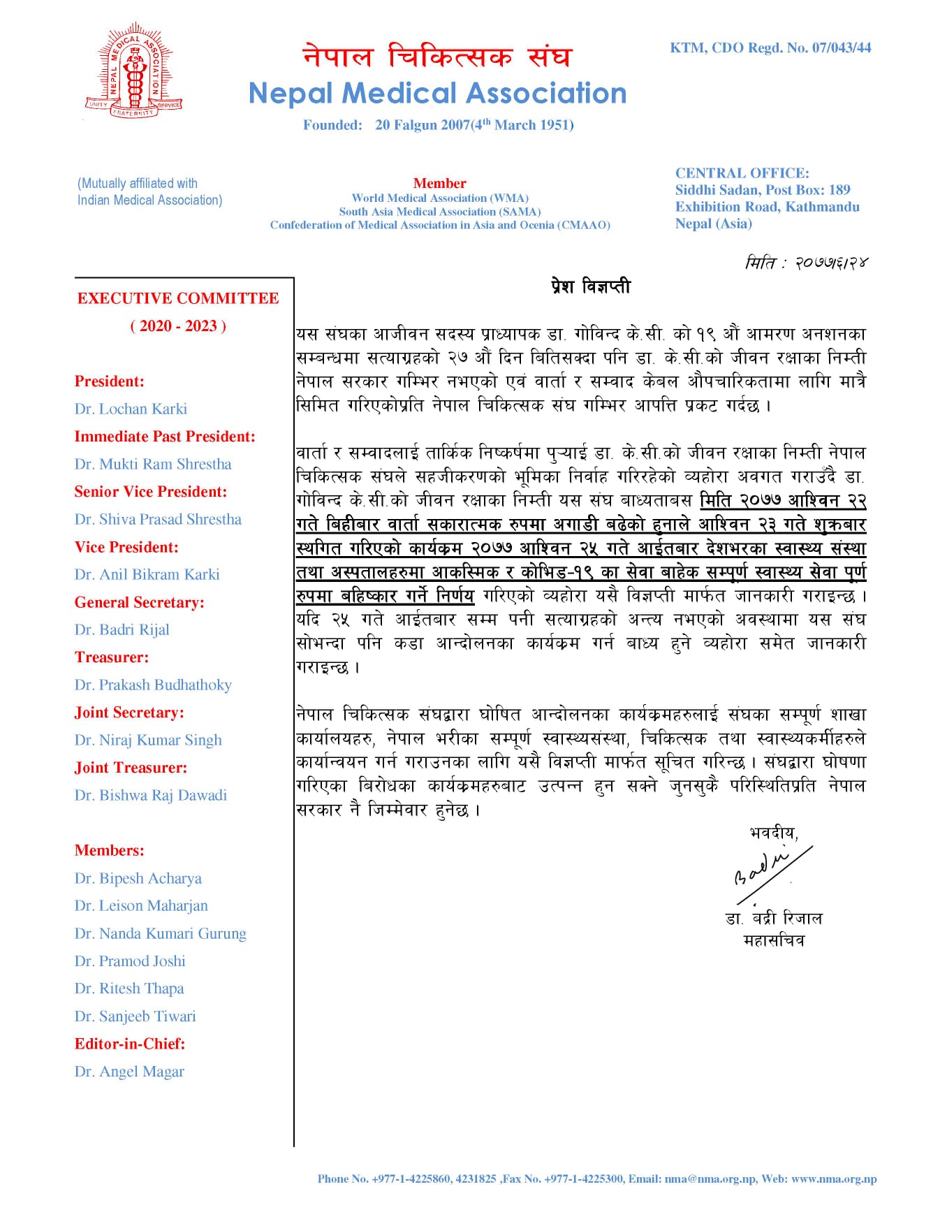 केसीका माग पूरा गर्न सरकारलाई चिकित्सक संघको दबाबः अस्पतालका आकस्मिकबाहेकका सेवा बहिष्कार गर्ने घोषणा