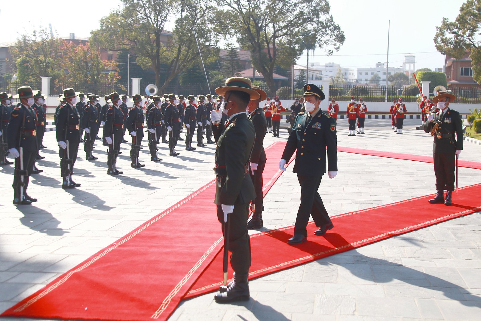 काठमाडौं । नेपाल भ्रमणमा रहेका चीनका रक्षामन्त्री वेइ फेङ्हे नेपाली सेनाको जंगी अड्डा निरीक्षणका लागि पुगेका छन् । भद्रकालीस्थित जंगीअड्डामा नेपाली सेनाको एक टोलीले उनलाई सम्मान गारद अर्पण गरेको थियो ।