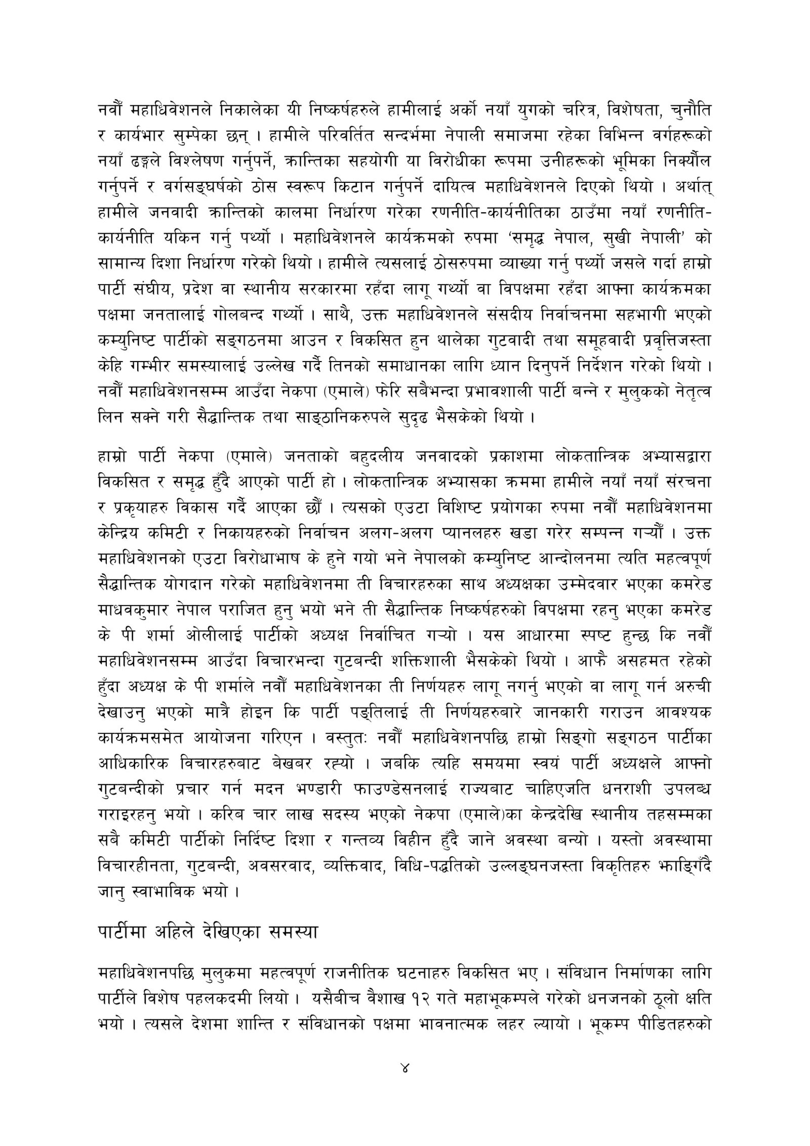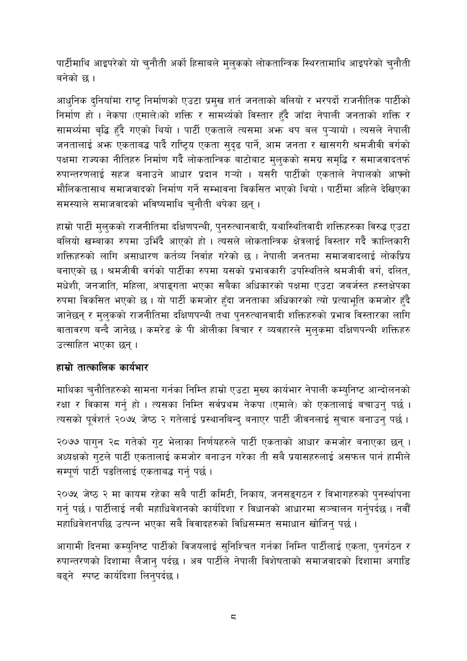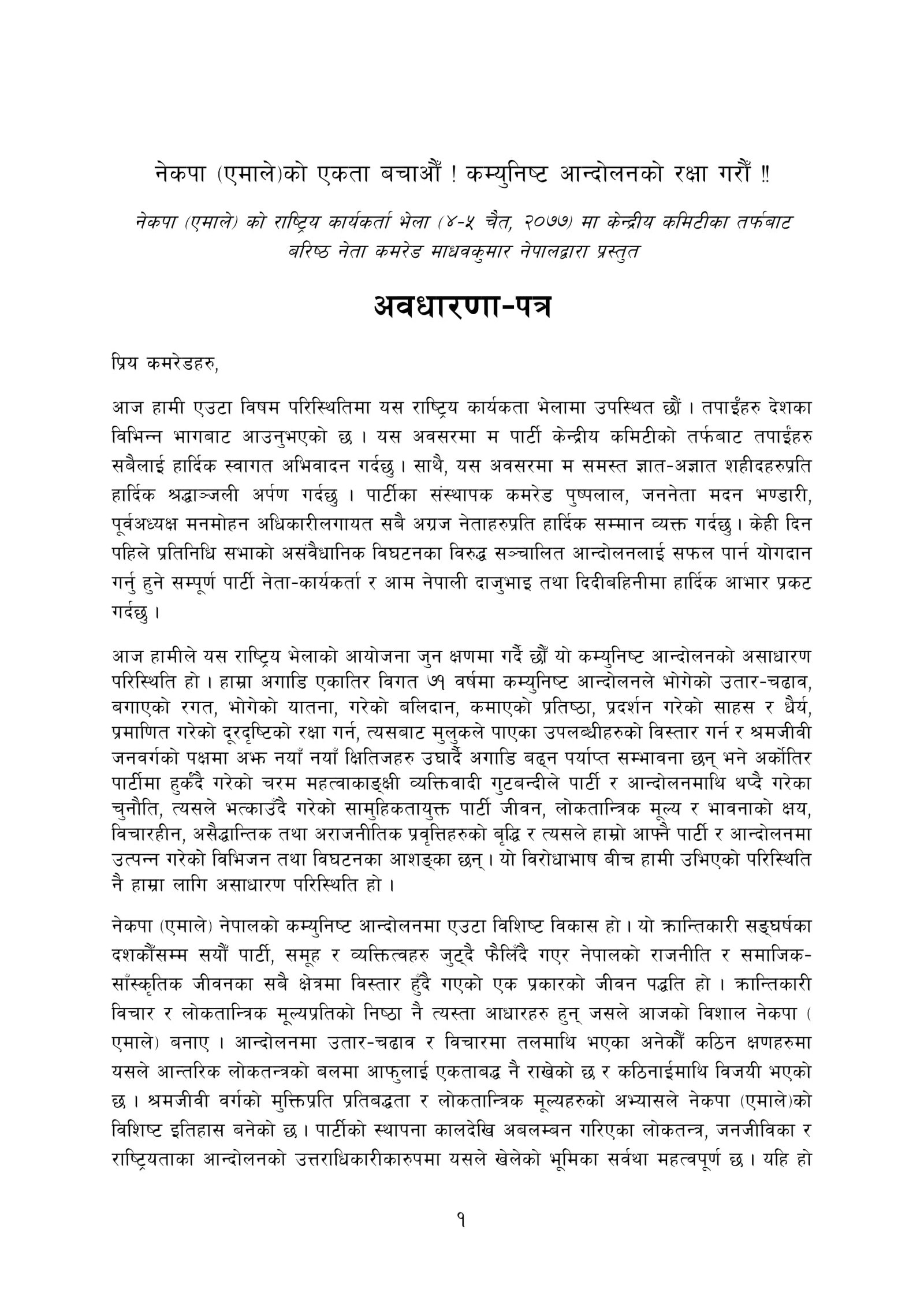 यस्तो कार्यकर्ता भेलामा माधव नेपालले पेश गरेको राजनीतिक प्रस्ताव(पूर्णपाठसहित)