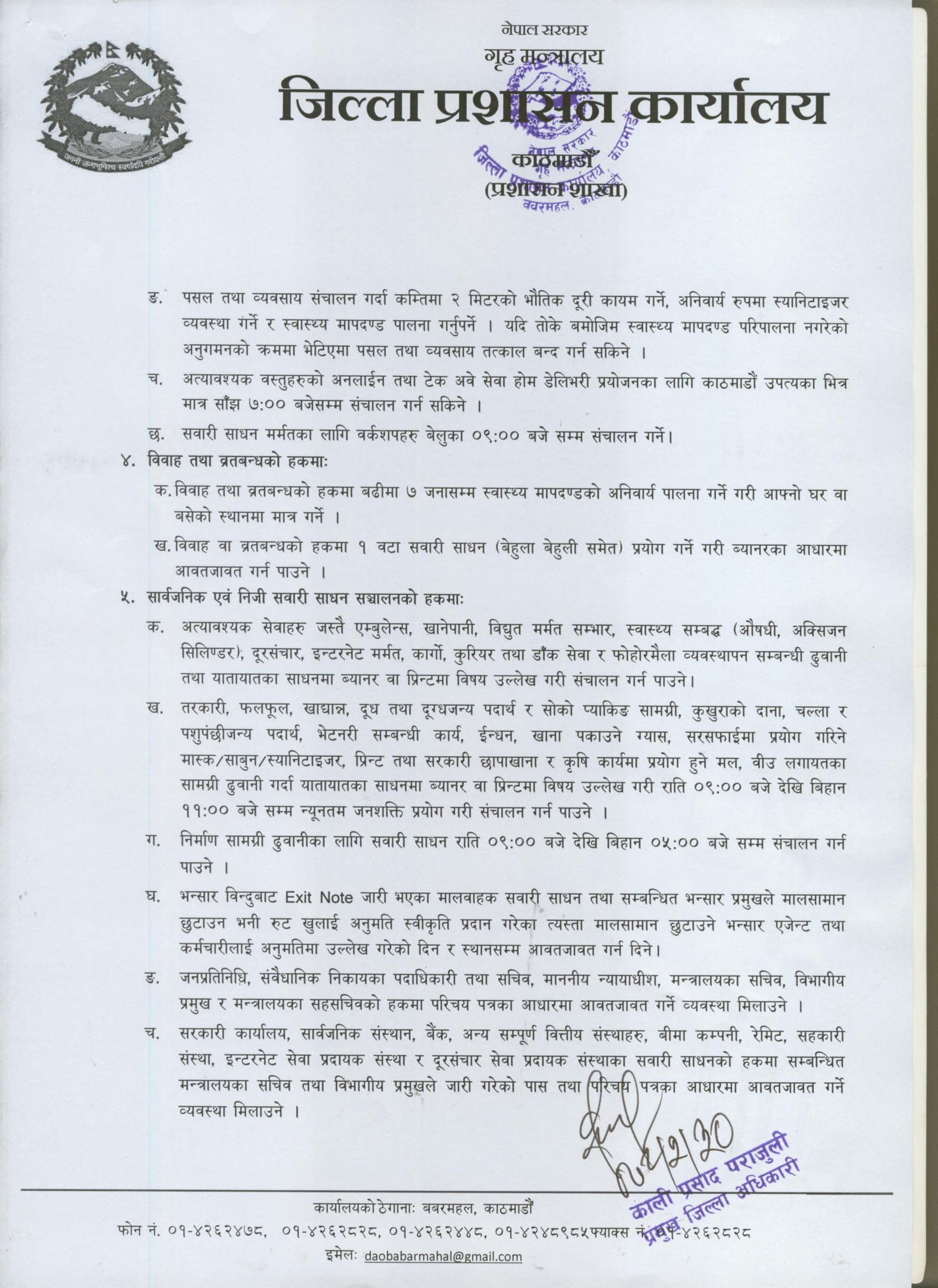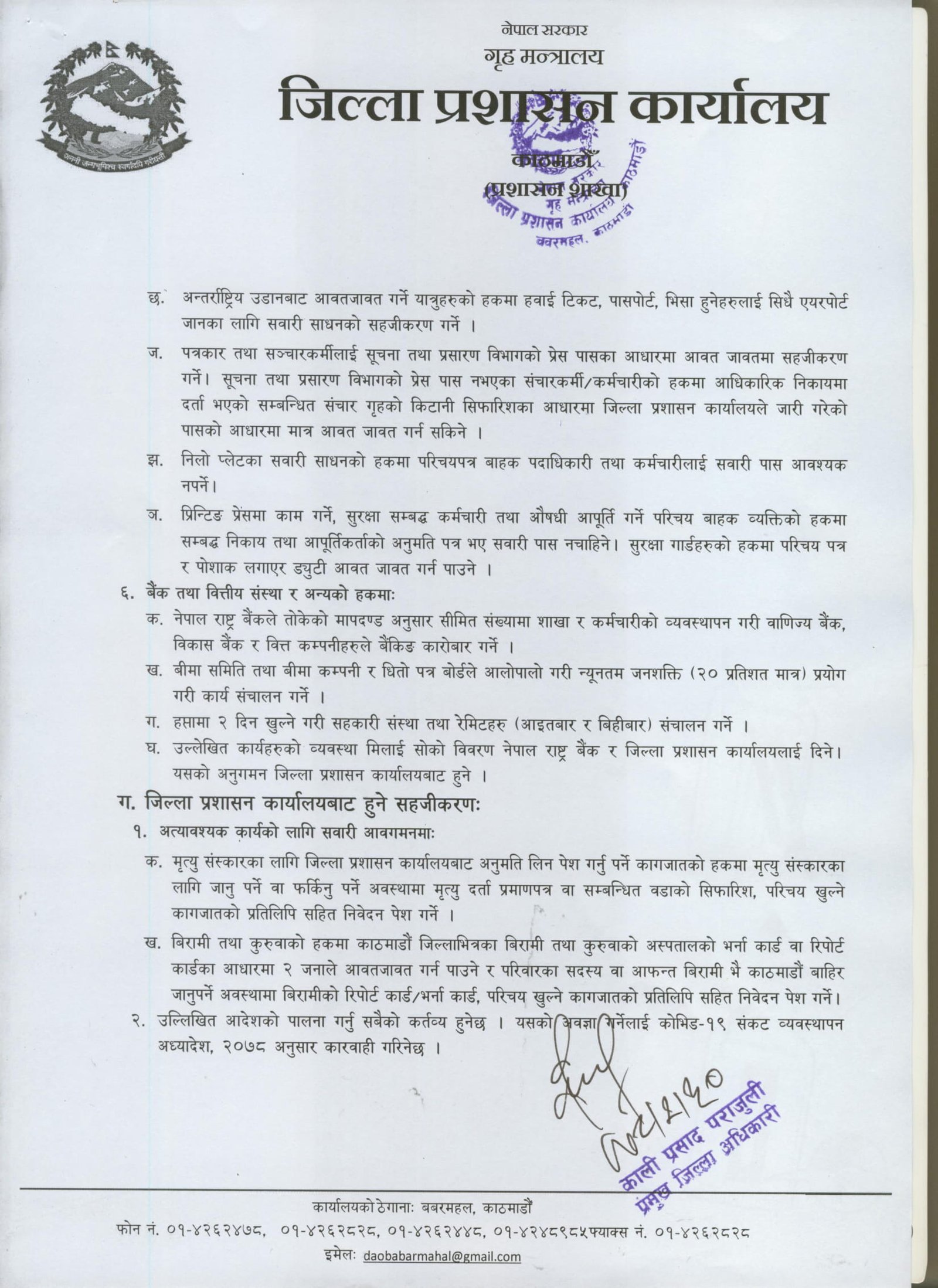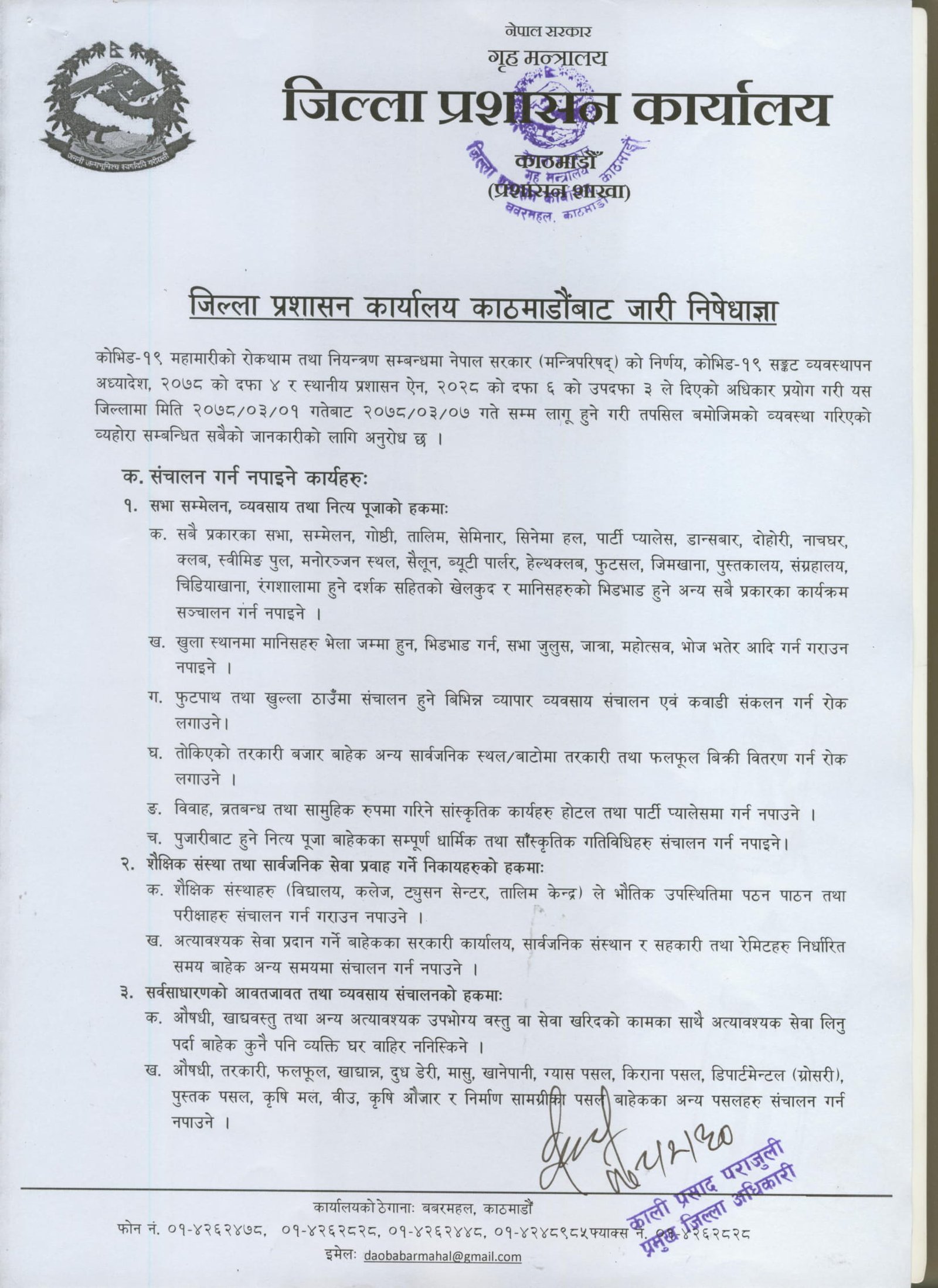 काठमाडौं । काठमाडौं उपत्यकामा एक साता निषेधाज्ञा थप भएको छ । काठमाडौं, भक्तपुर र ललितपुरका प्रमुख जिल्ला अधिकारीहरुको आइतबारको बैठकले कोरोनाको जोखिम नघटेको भन्दै एकसाता निषेधाज्ञा थप गर्ने निर्णय गरेको हो । भक्तपुरका प्रमुख जिज्ला अधिकारी प्रेमप्रसाद भट्टराईले संक्रमणदर ३० प्रतिशतभन्दा तल नझरेकाले निषेधाज्ञालाई निरन्तरता दिएको बताए ।