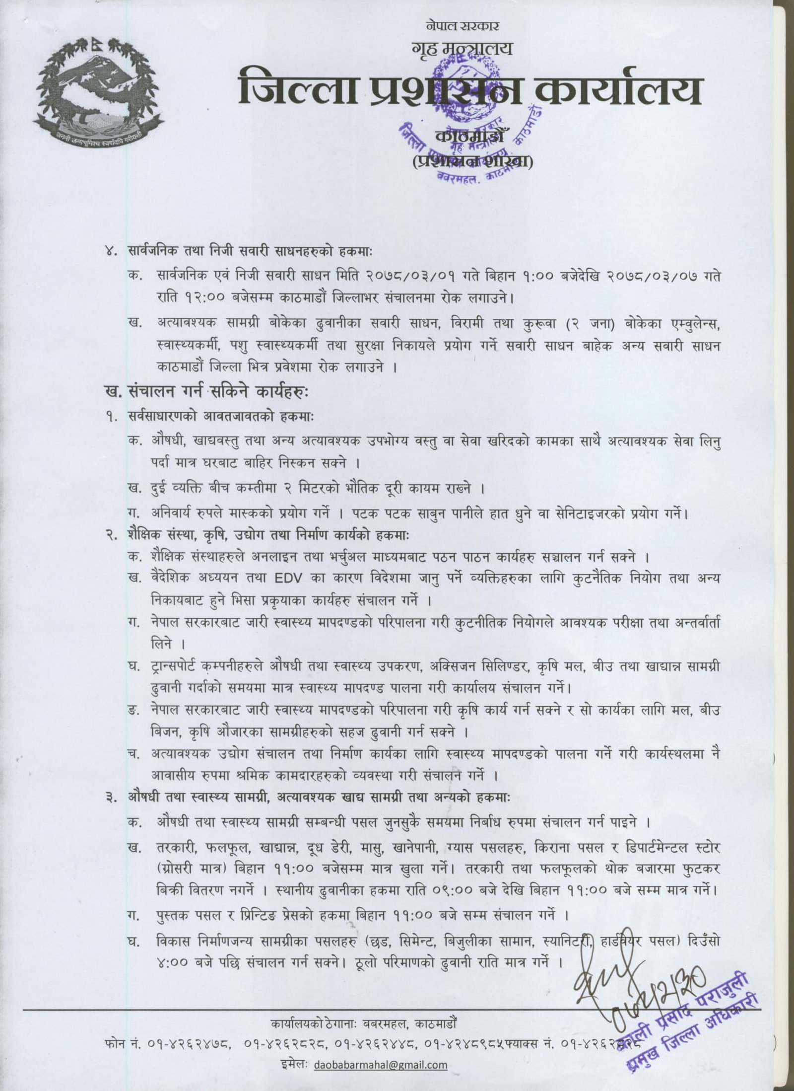 कोरोना संक्रमण रोकथामका लागि लागू गरिएको निषेधाज्ञाको म्याद सोमबार सकिँदै थियो । निषेधाज्ञा थप गरिएपनि अब किराना र पुस्तक पसलहरु बिहान ११ बजेसम्म खोल्न पाइने छ ।