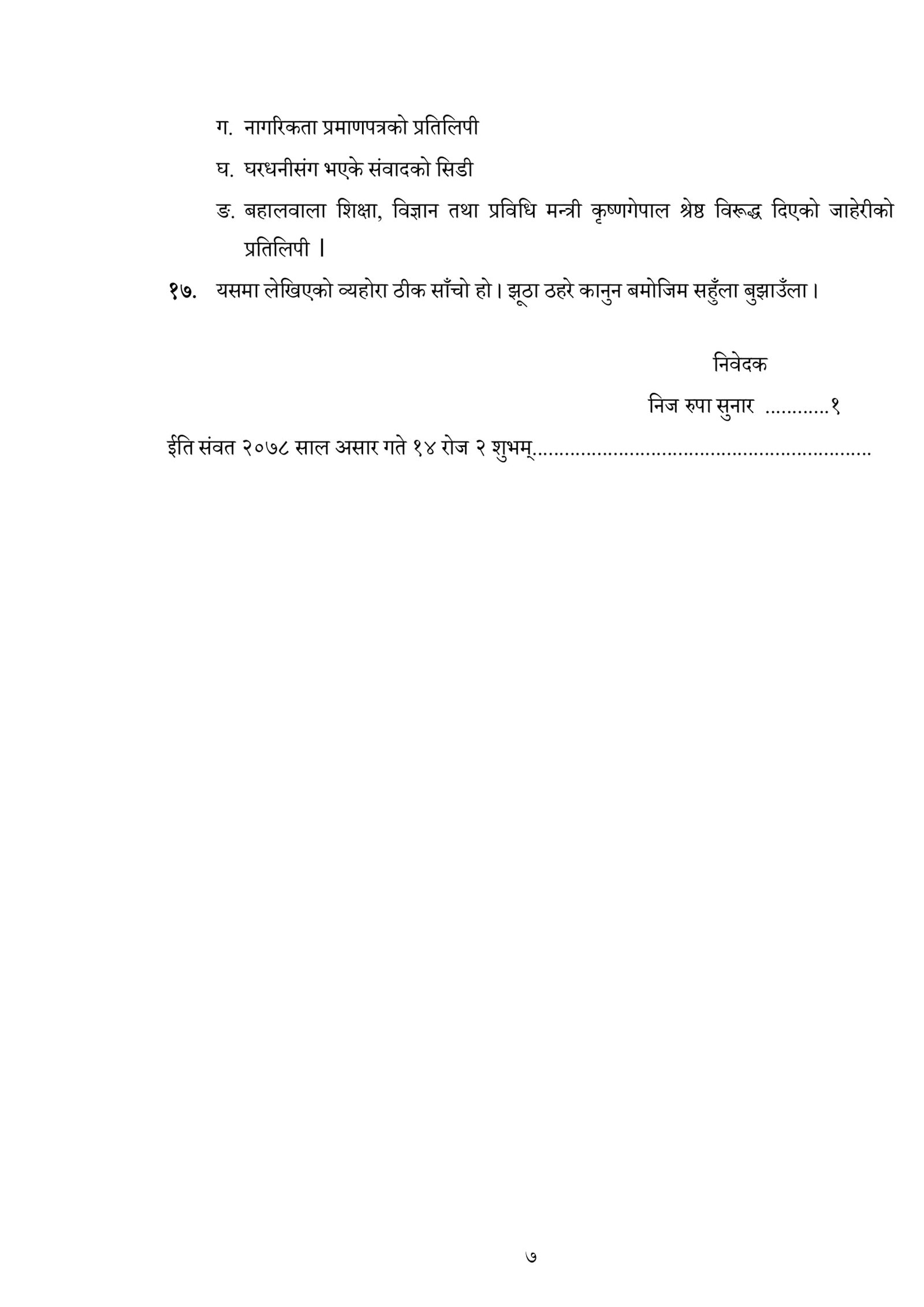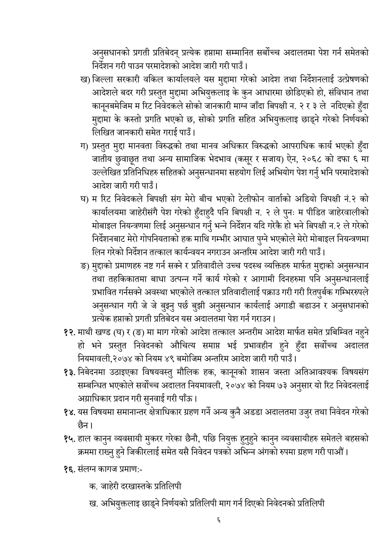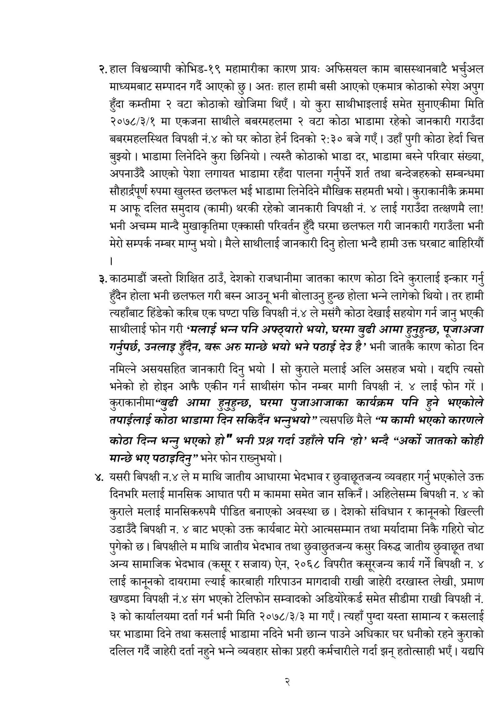 काठमाडौँ । जातीय भेदभाव तथा छुवाछुत कसुर आरोपमा कारबाहीको माग गर्दै शिक्षामन्त्री कृष्णगोपाल श्रेष्ठविरुद्ध सर्वोच्च अदालतमा रिट दर्ता भएको छ । तनहुँकी रुपा सुनारले आइतबार शिक्षामन्त्री श्रेष्ठविरुद्ध सर्वोच्चमा रिट दर्ता गराएकी हुन् ।