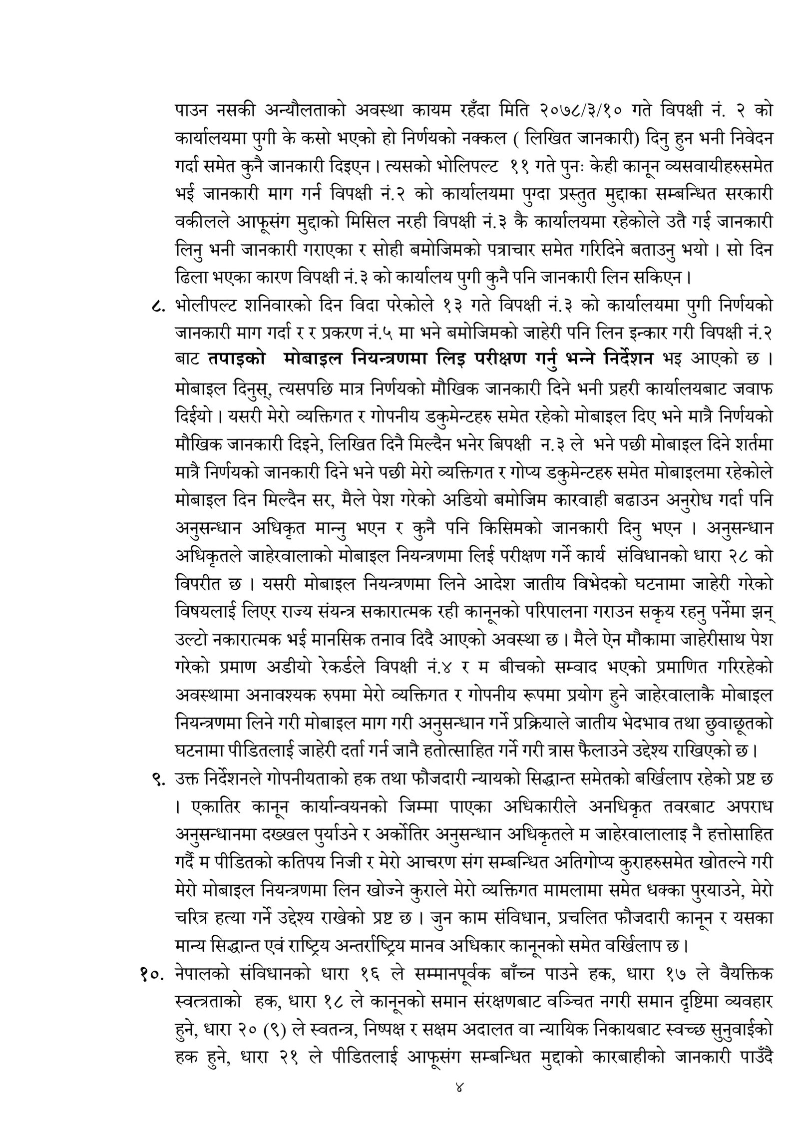 रिटमा शिक्षामन्त्री श्रेष्ठसहित जिल्ला सरकारी वकिलको कार्यालय बबहरमहल, महानगरीय प्रहरी वृत सिंहदरबार र सरस्वती प्रधानलाई विपक्षी बनाइएको छ । थरको कारण देखाउँदै बबरमहलकी घरबेटी सरस्वती प्रधानले सुनारलाई कोठा नदिएपछि उनले प्रहरीमा जाहेरी दिएकी थिइन् ।