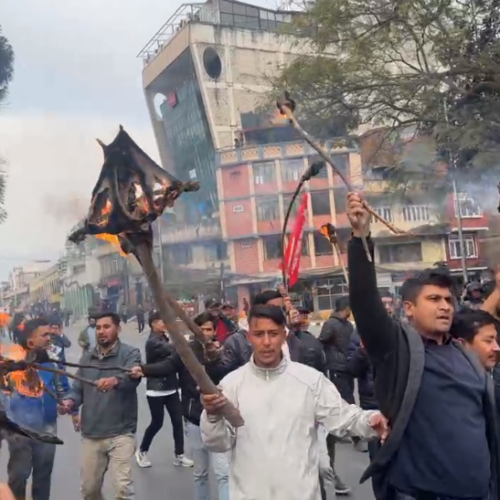 काठमाडौं । नेकपा एमाले निकट अखिल नेपाल राष्ट्रिय स्वतन्त्र विद्यार्थी युनियन (अनेरास्ववियु)ले भौतिक पूर्वाधार तथा यातायात मन्त्री प्रकाश ज्वालालाई बर्खास्त गरिनुपर्ने माग गर्दै मसाल जुलुस निकालेको छ ।