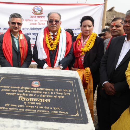 काठमाडौँ । प्रधानमन्त्री पुष्पकमल दाहाल ‘प्रचण्ड’ले धनुषा र सिरहा जोड्ने पक्की पुलको शिलान्यास गरेका छन् । धनुषाको सबैला नगरपालिका–४ र सिरहाको कल्याणपुर नगरपालिका–५ जोड्ने पक्की पुलको शनिबार शिलान्यास गरेको प्रधानमन्त्रीको निजी सचिवालयले जनाएको छ ।