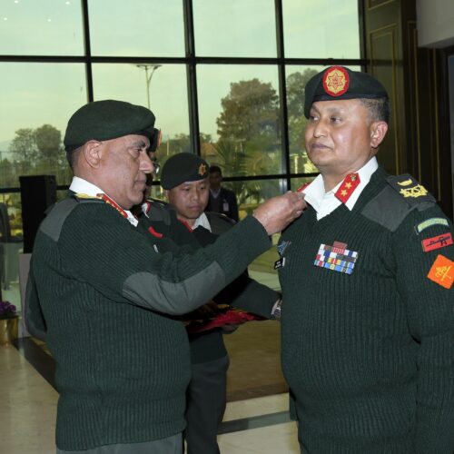 काठमाडौँ । प्रधानसेनापति प्रभुराम शर्माले उपरथीमा पदोन्नति भएका सुनिल श्रेष्ठ, अनुपजङ्ग थापा र प्रकाश देउजालाई आइतबार जङ्गी अड्डामा आयोजित एक कार्यक्रममा दज्र्यानीचिह्न प्रदान गरेका छन् ।