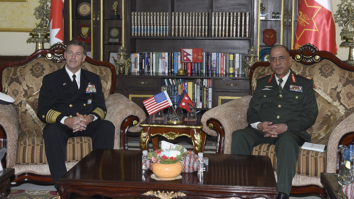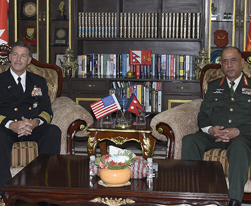 त्यसैगरी प्रधानसेनापति प्रभुराम शर्मा र अमेरिकी सेनाका इन्डो प्यासिफिक कमान्डका एडमिरल जोन सी अक्युलिनोबीच शिष्टाचार भेटवार्ता भएको छ । सैनिक मुख्यालय जङ्गी अड्डामा भएको भेटवार्तामा उनीहरुबीच वीरेन्द्र शान्ति कार्य तालिम केन्द्र, पाँचखालमा सञ्चालन भइरहेको बहुराष्ट्रिय अभ्यास शान्ति प्रयास–४ लगायत आपसी चासोका विषयमा विचार–विमर्श भएको सैनिक जनसम्पर्क तथा सूचना निर्देशनालयले जनाएको छ ।