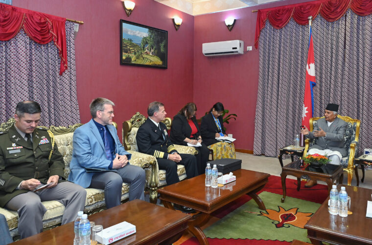 काठमाडौँ । राष्ट्रपति रामचन्द्र पौडेलसँग संयुक्त राज्य अमेरिकाको अमेरिकी सेनाअन्तर्गत युएस इन्डो–प्यासिफिक कमान्ड कमान्डर एडमिरल जोन सी अक्यैलिनोले राष्ट्रपति भवन शीतल निवासमा शिष्टाचार भेट गरेका छन् ।