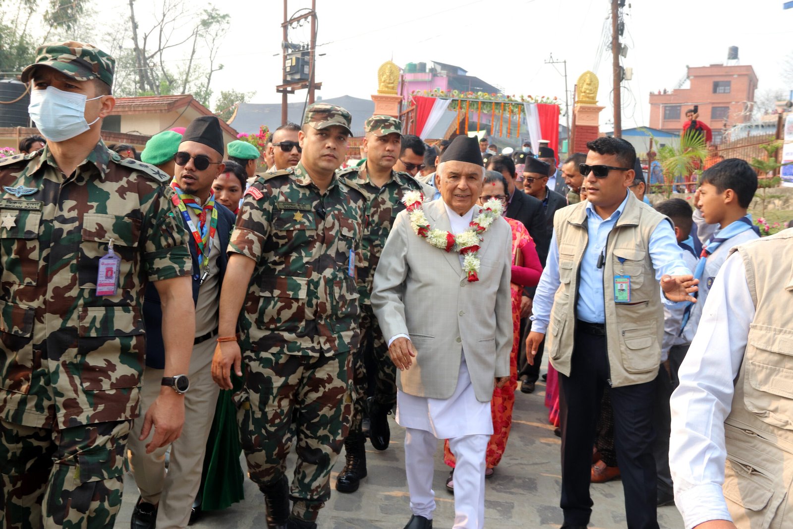 राष्ट्रपति पौडेललाई काठमाडौँ क्षेत्र नम्बर ५ का सांसद प्रदीप पौडेल, टोखा नगरपालिकाका प्रमुख प्रकाश अधिकारी, उपप्रमुख मुरारी तामाङ, प्रमुख प्रशासकीय अधिकृत शेरबहादुर विसी, सपनातीर्थ क्षेत्र विकास समितिका अध्यक्ष देवराज डङ्गोललगायतले स्वागत गरेका थिए ।