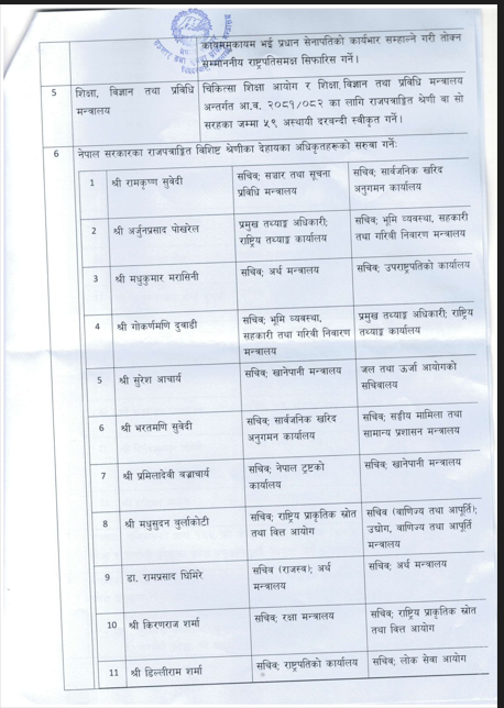 उनकाअनुसार मन्त्रिपरिषद बैठकले ५ देशका राजदूत फिर्ता, १८ देशमा राजदूत नियुक्ति सिफारिस र २२ सचिवहरूको सरुवा गर्ने निर्णय गरेको छ ।